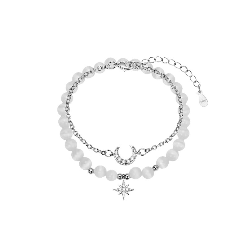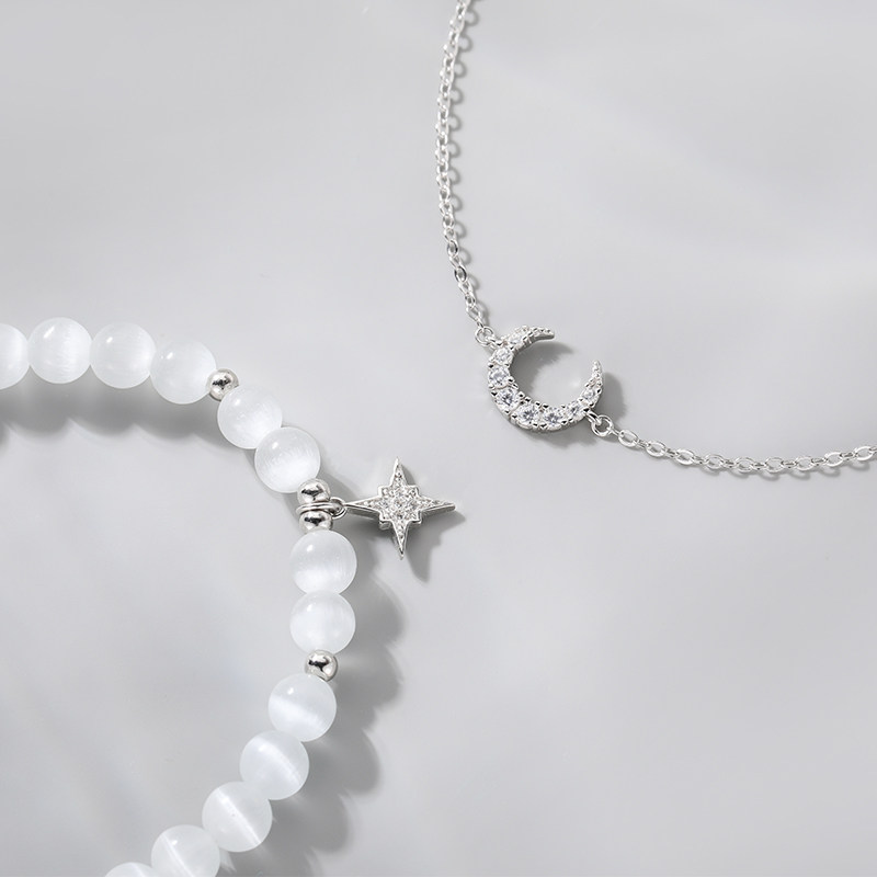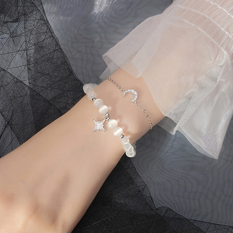 猫蛰S925纯银星星月亮纯银手链女生新款猫眼石上班族学生套装手串