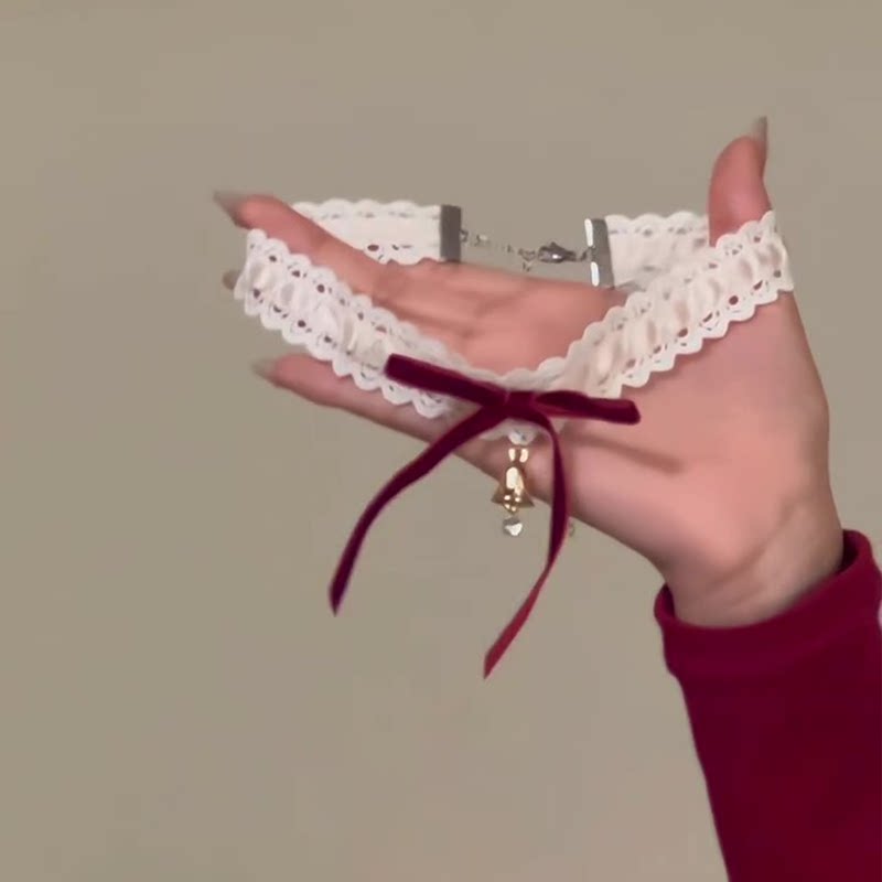圣诞出片!红色蝴蝶结铃铛蕾丝项链女2025新款甜美风时尚颈链配饰