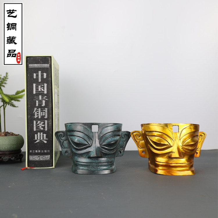 三星堆青铜器摆件 太阳鸟神树扶桑树纵目面具巫师立像 仿古工艺品