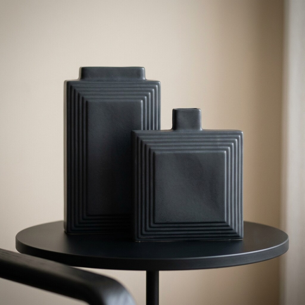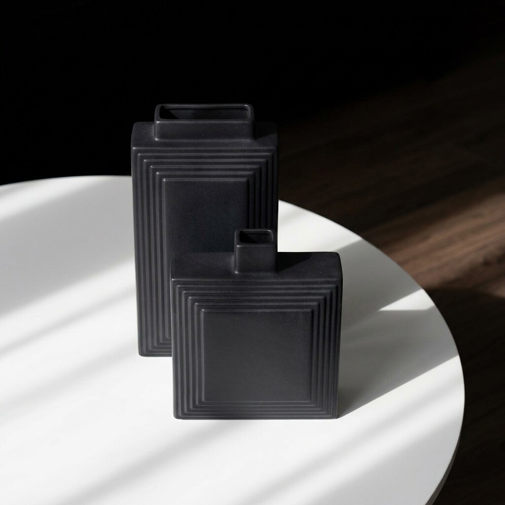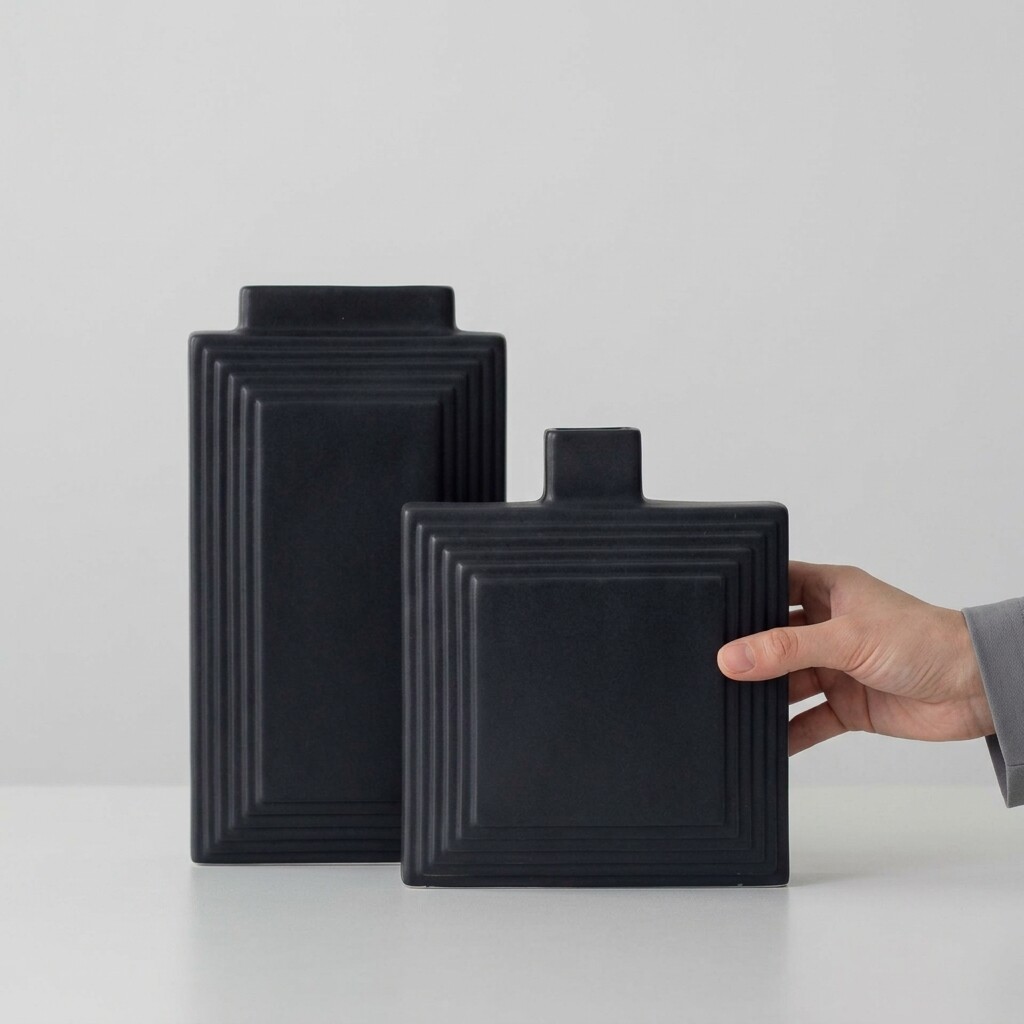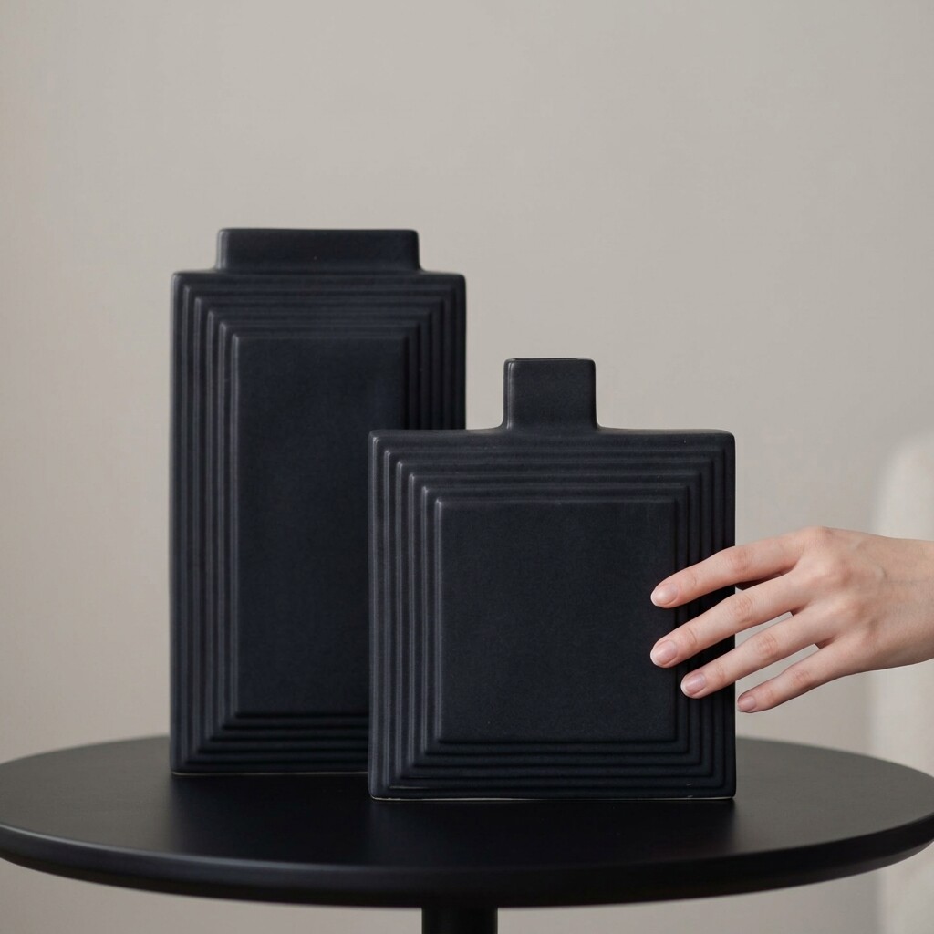 现代简约黑色几何方形花瓶陶瓷装饰摆件商务风家居工艺品