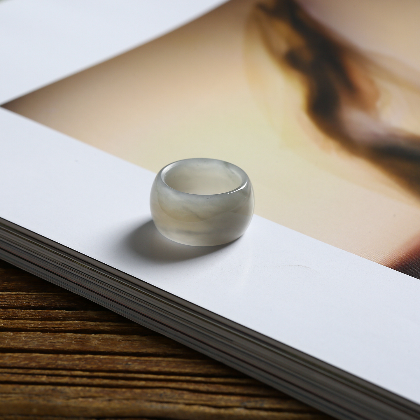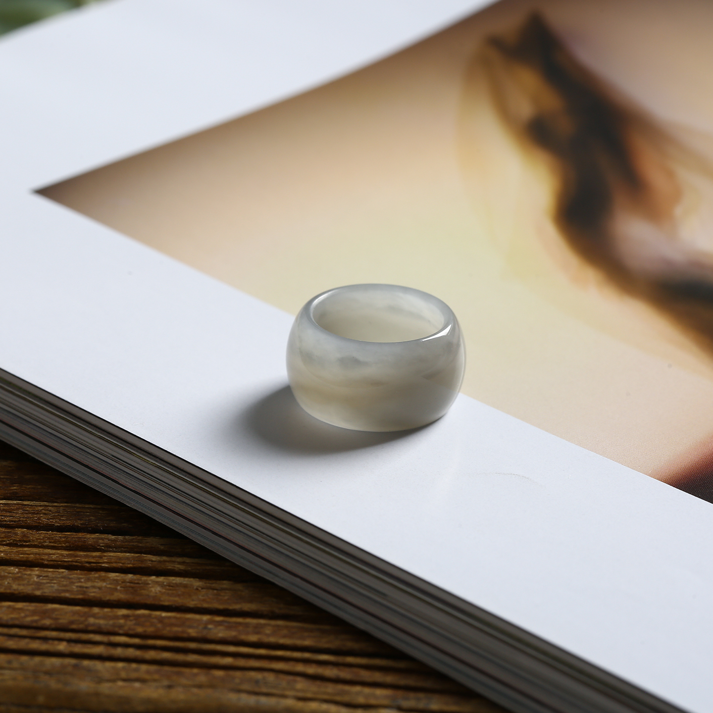 13号戒指 和田玉烟紫宽条圆弧轮胎款指环 X65