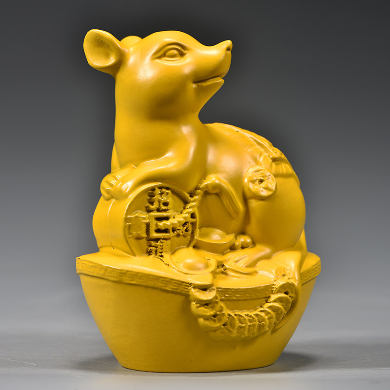 黄色木雕老鼠摆件十二生肖木质鼠雕刻家居客厅装饰红木工艺品送礼