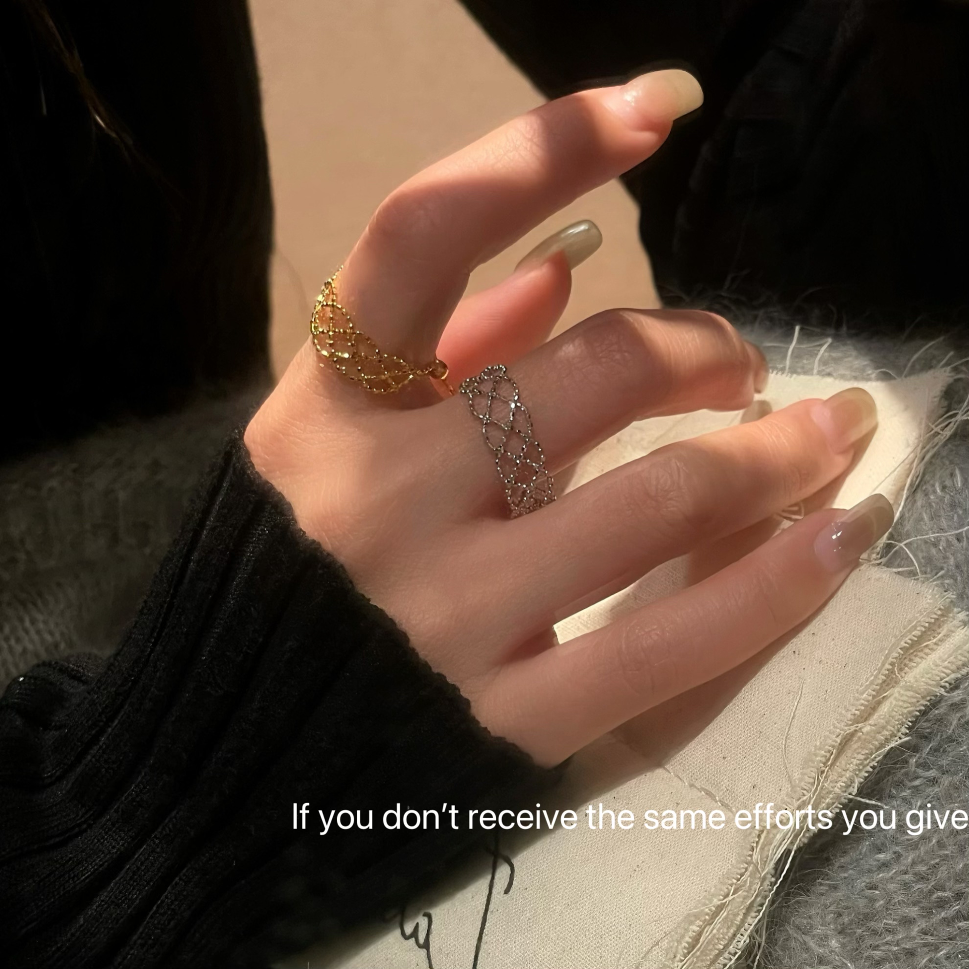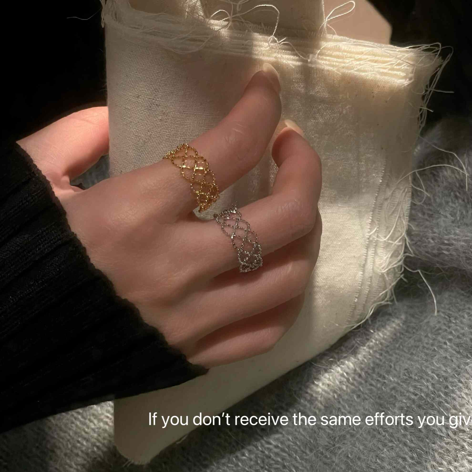 S925纯银米珠编织网纹蕾丝链条可调仙女戒指小众设计高级感法式
