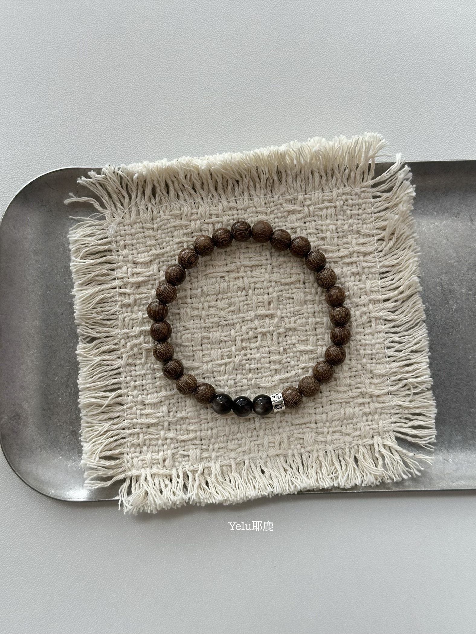 Yelu原创天然黑玛瑙s925纯银手链小众黑色简约复古百搭手串男女