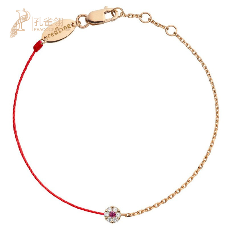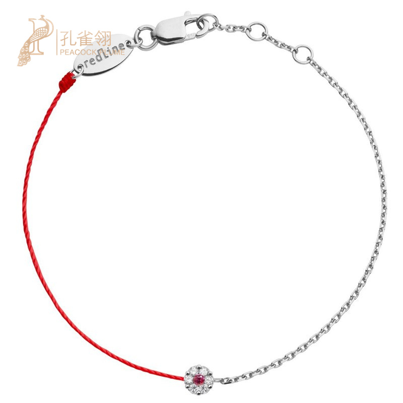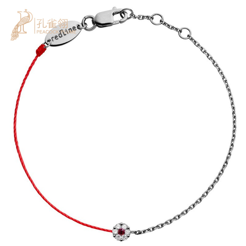 redline红绳女士时尚经典0.05克拉圆形钻石半绳半链手链