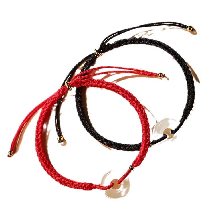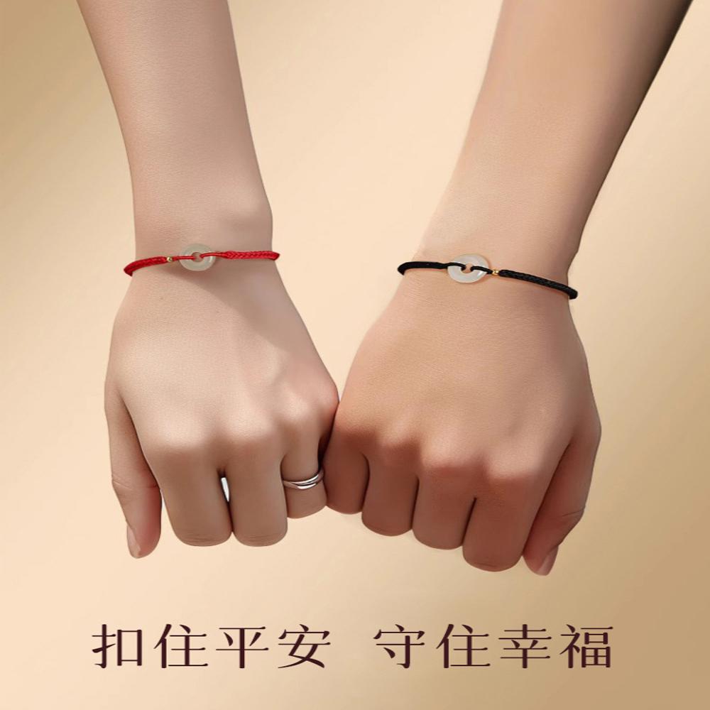 和田玉平安扣情侣手链一对情侣款女生红绳编织手绳小众高级感手饰