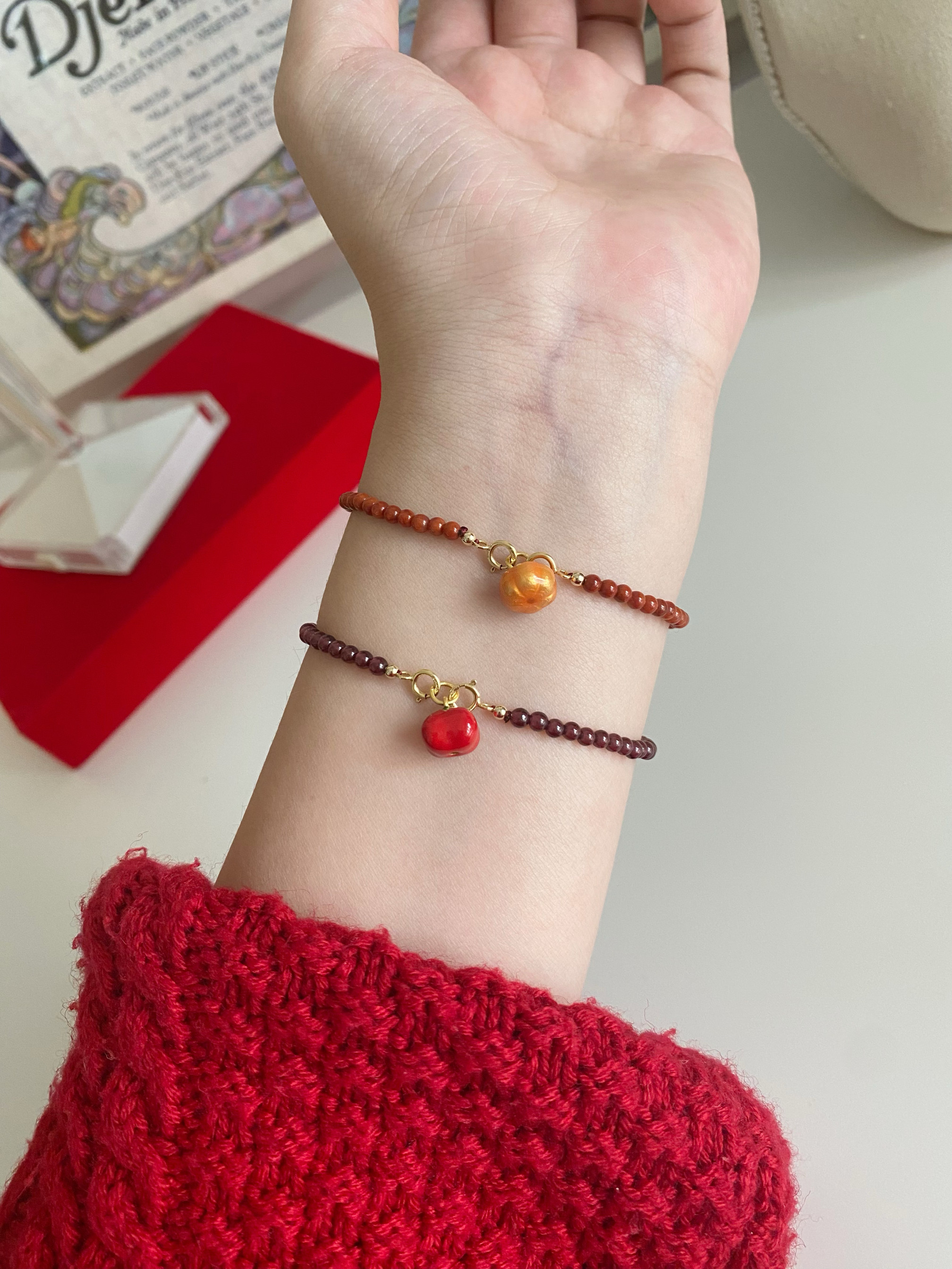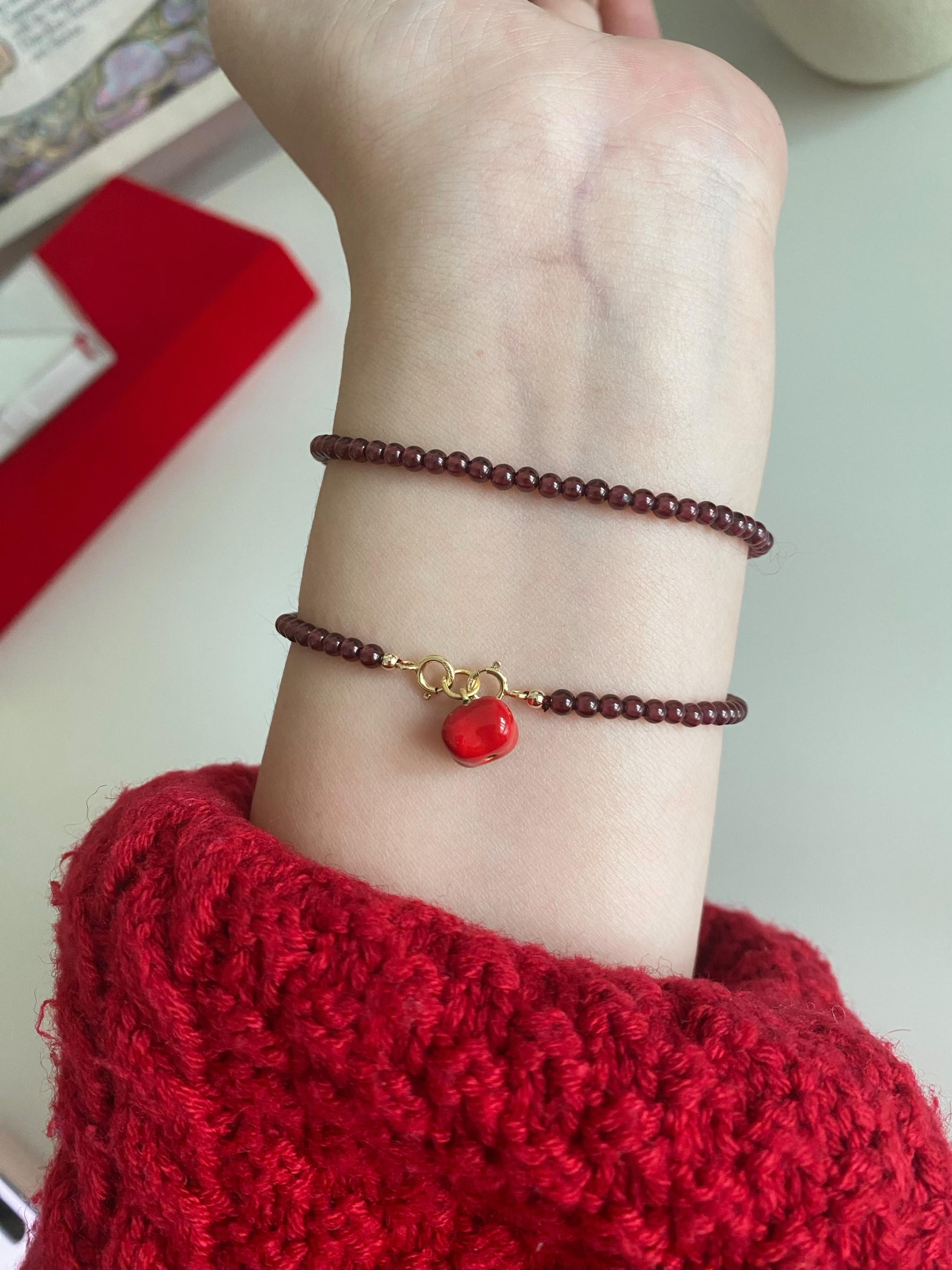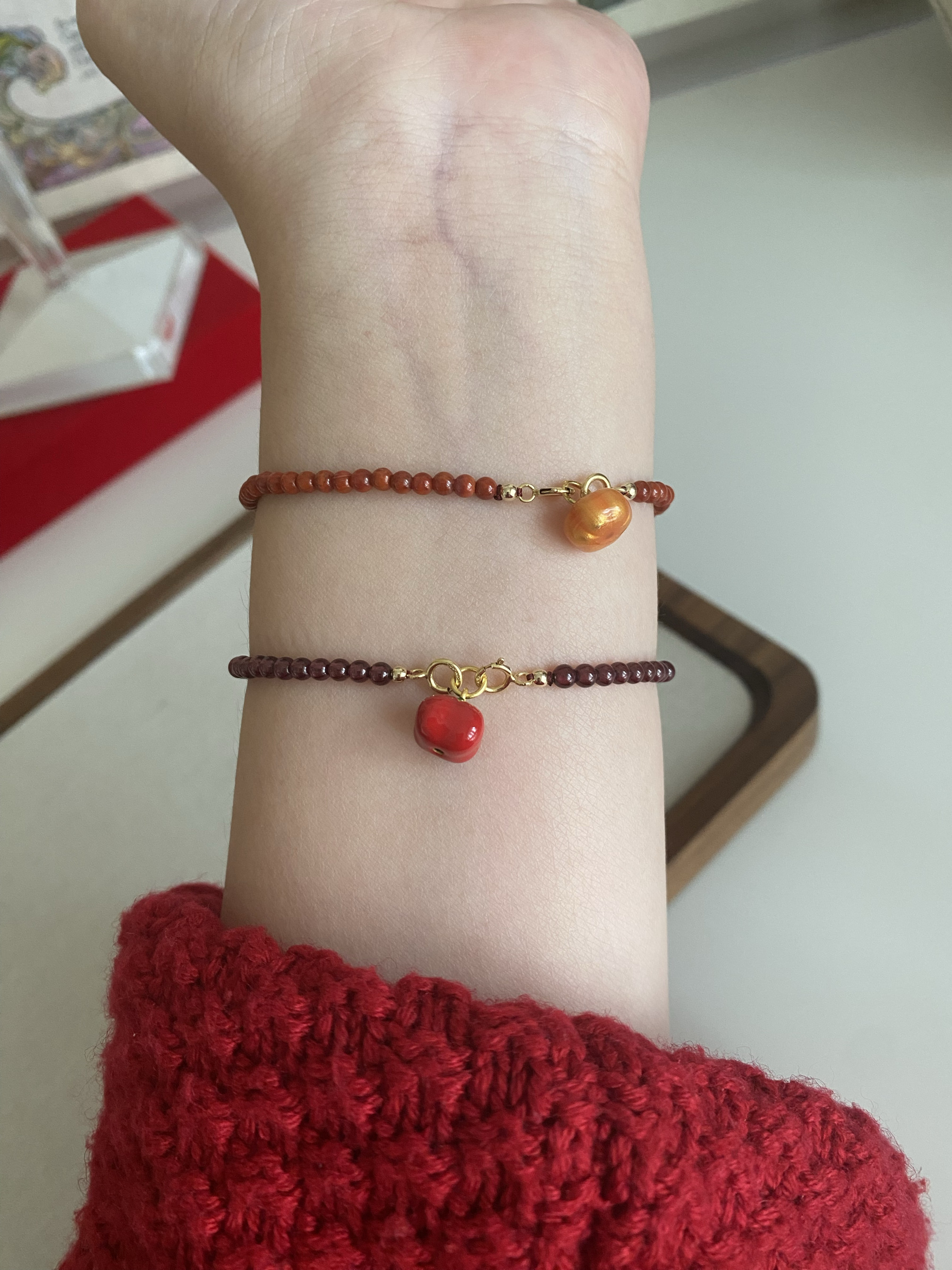 原创手作/ 柿柿如意好事发生 天然南红 石榴石手链 女新年礼物