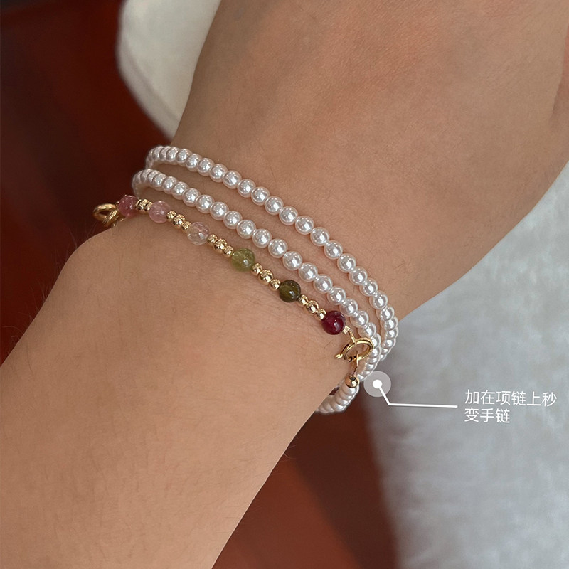 天然碧玺延长链项链多巴胺项链轻奢小众手链脚链天然项链糖果色