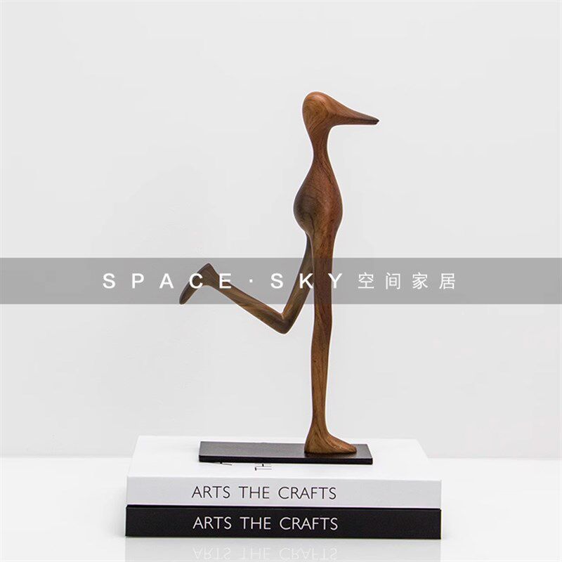 速发简约样板间床毛柜组合软装饰品黑嘴马头相框抽象尖色人摆件