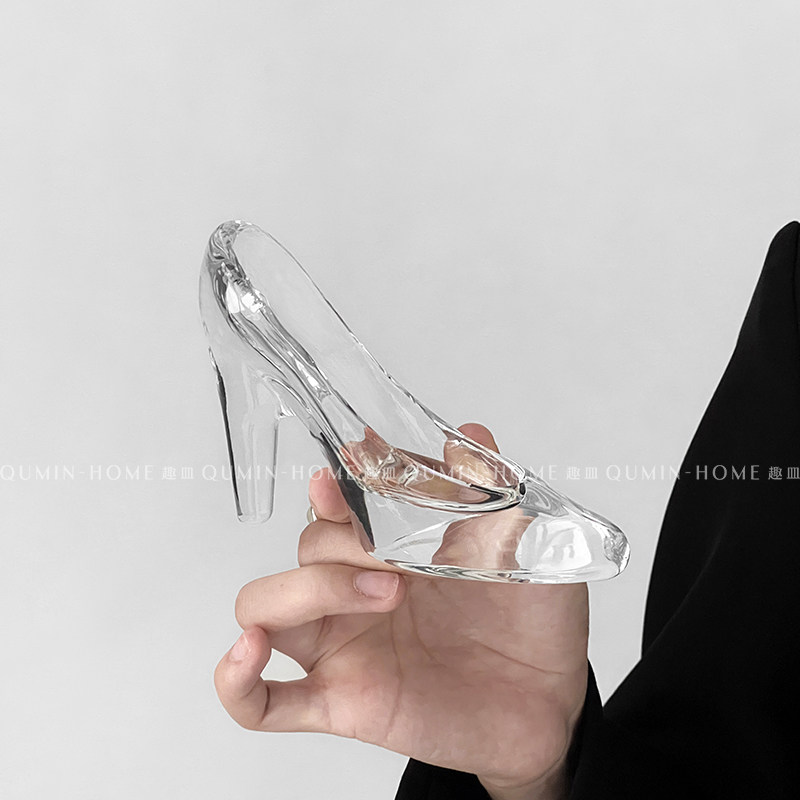 灰姑娘水晶玻璃鞋女透明玻璃摆件公主鞋结婚520情人节礼物送女友