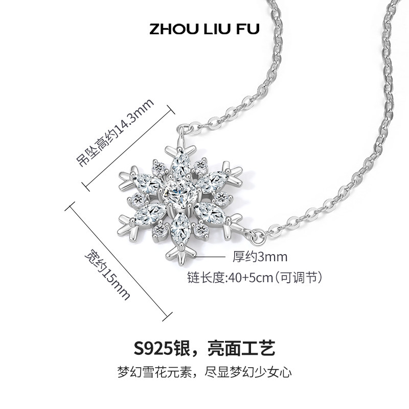 周六福雪花项链吊坠S925银梦幻唯美浪漫锁骨链送女友节日礼物