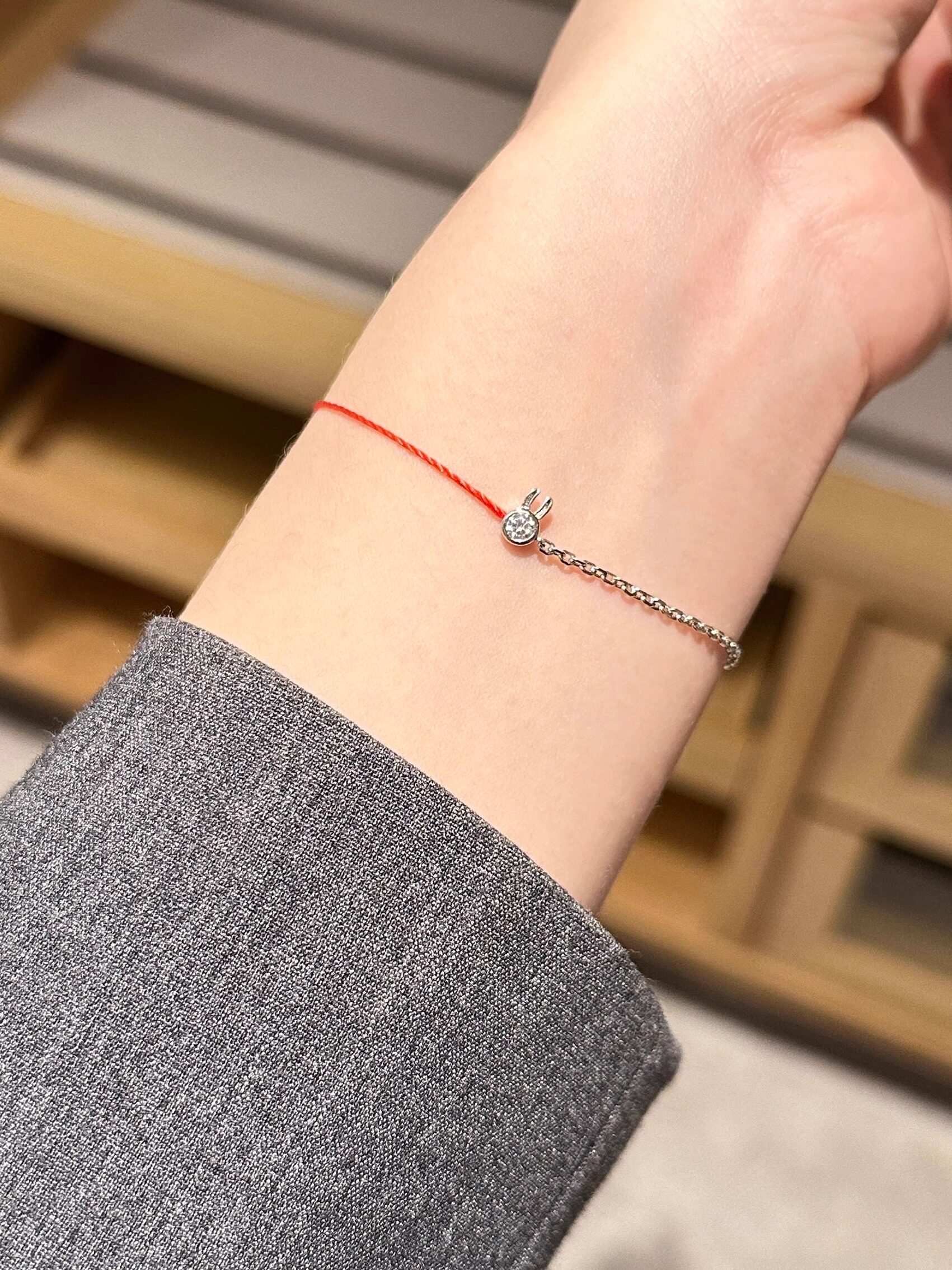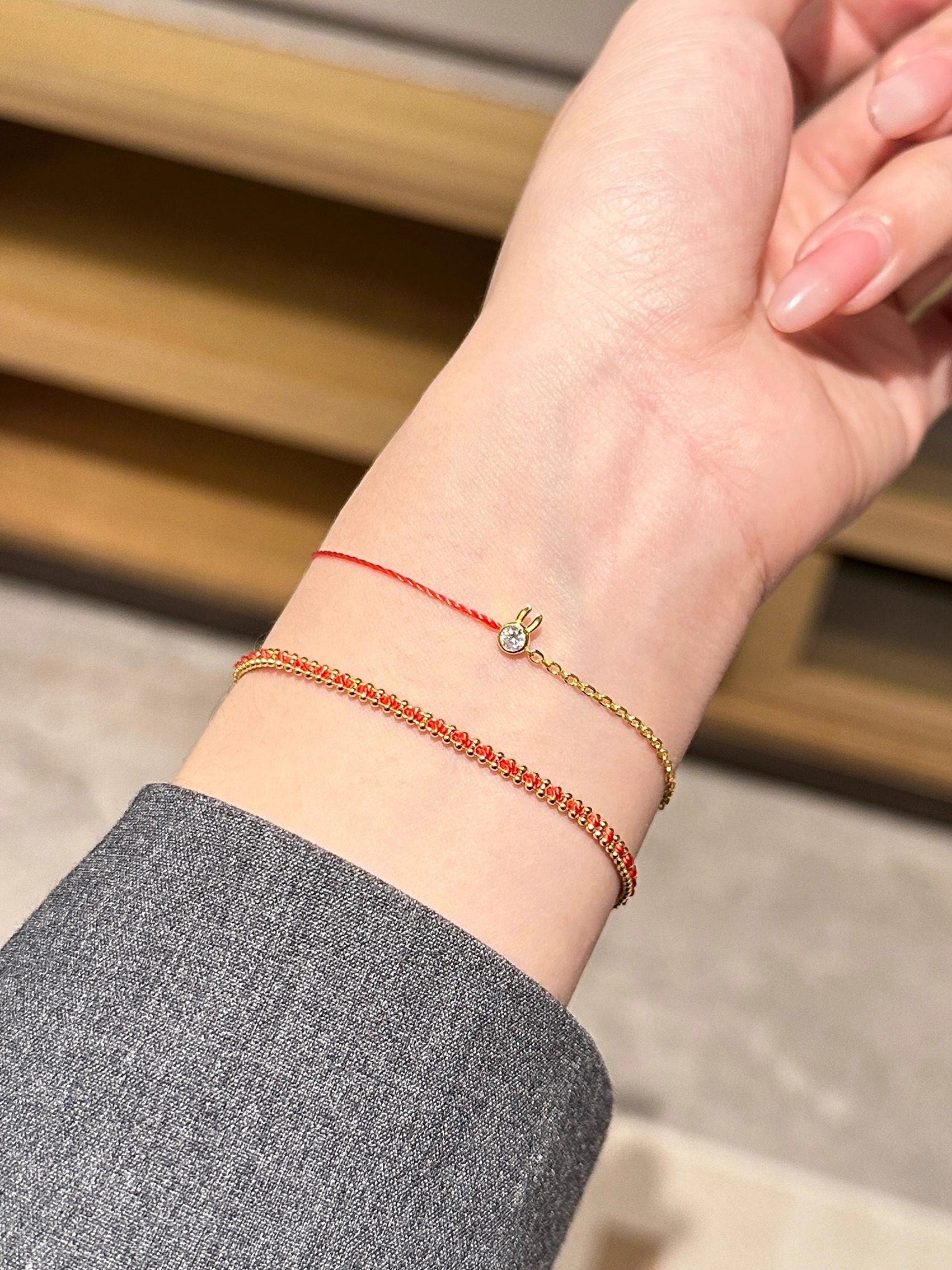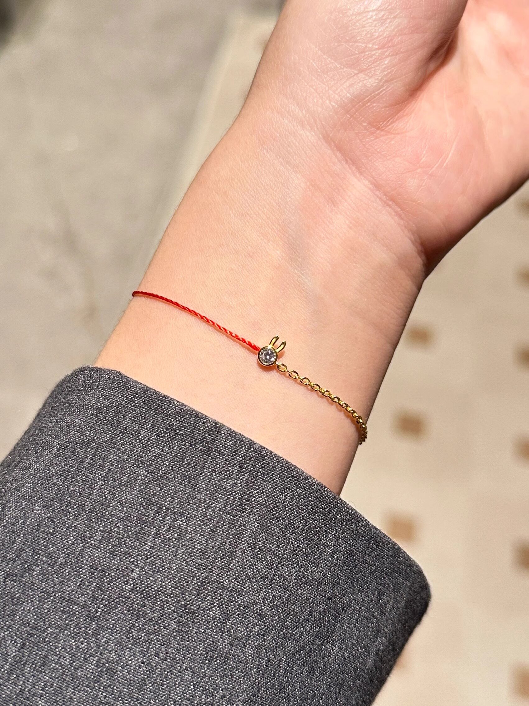 HOUHOU法国巴黎小兔子红绳手工全绳手链转运本命手绳送礼物925银