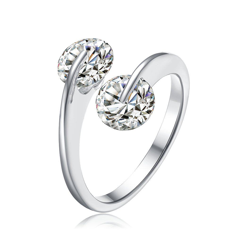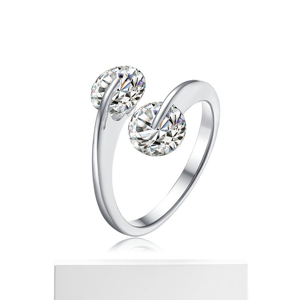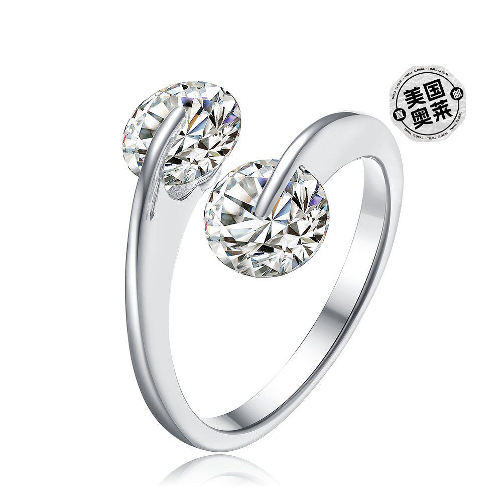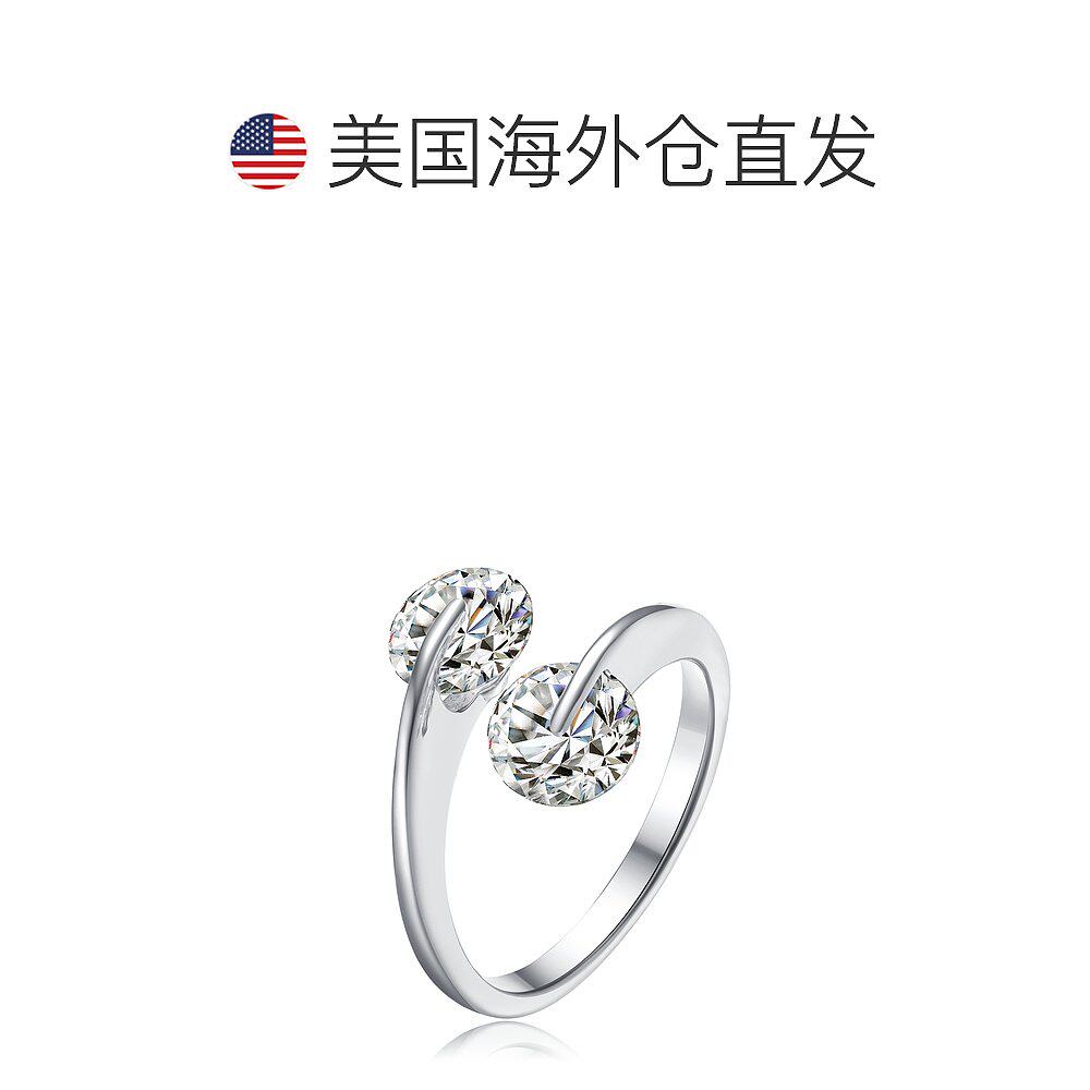 自营 GENEVIVE 925 纯银立方氧化锆两石订婚戒指 - 银白色 美国奥