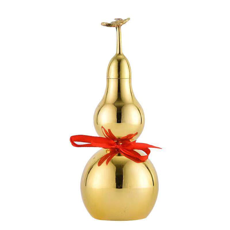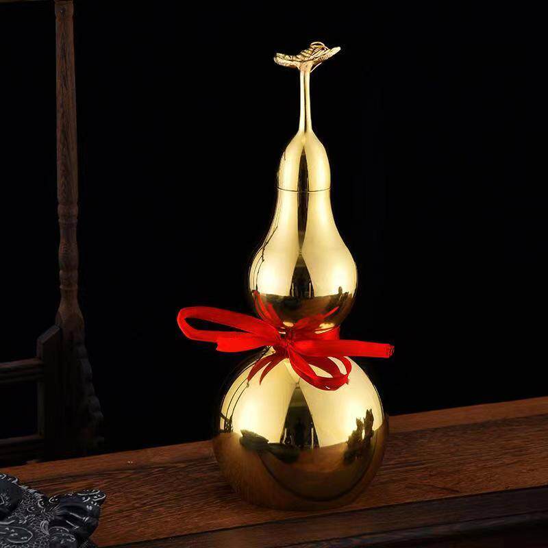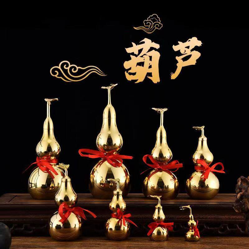 风水纯铜葫芦摆件镇宅招财有叶光面葫芦工艺礼品家居客厅装饰摆设