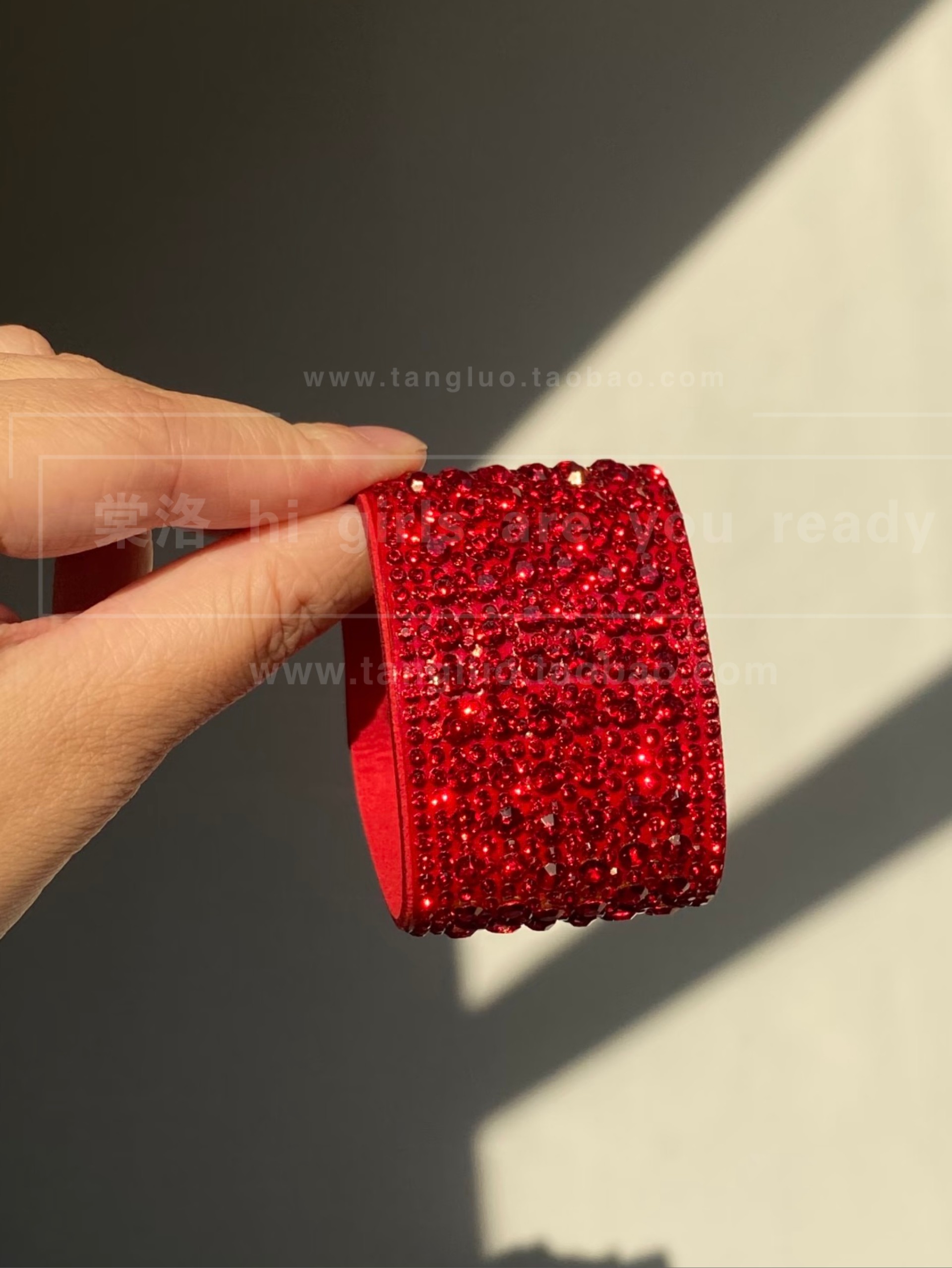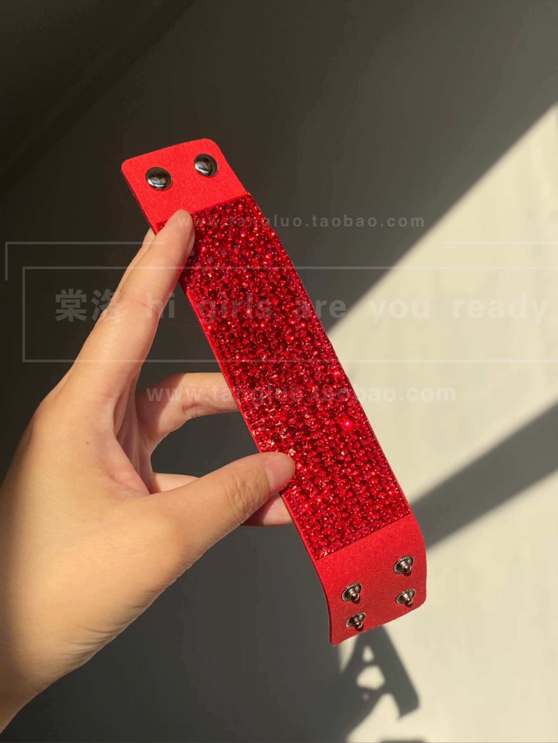 vintage 红色血钻爆闪手镯女宽版夸张麂皮手环欧美辣妹风手饰品潮