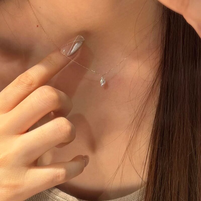s925纯银极细水滴项链女款2026新款闪钻吊坠精致锁骨颈链通勤配饰