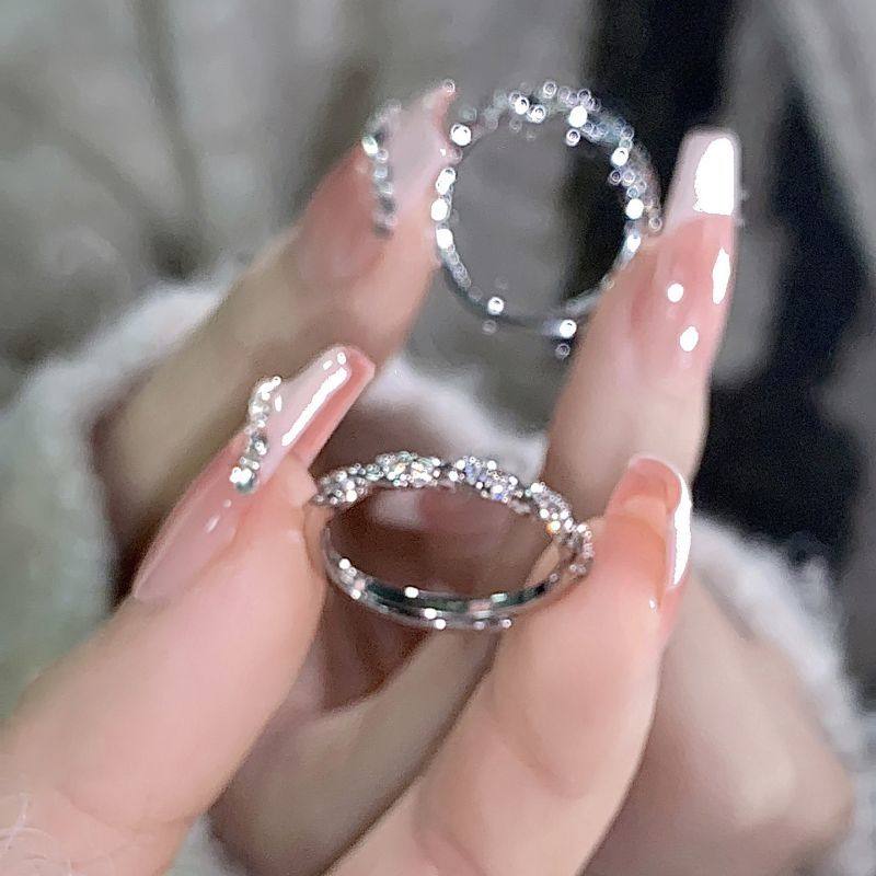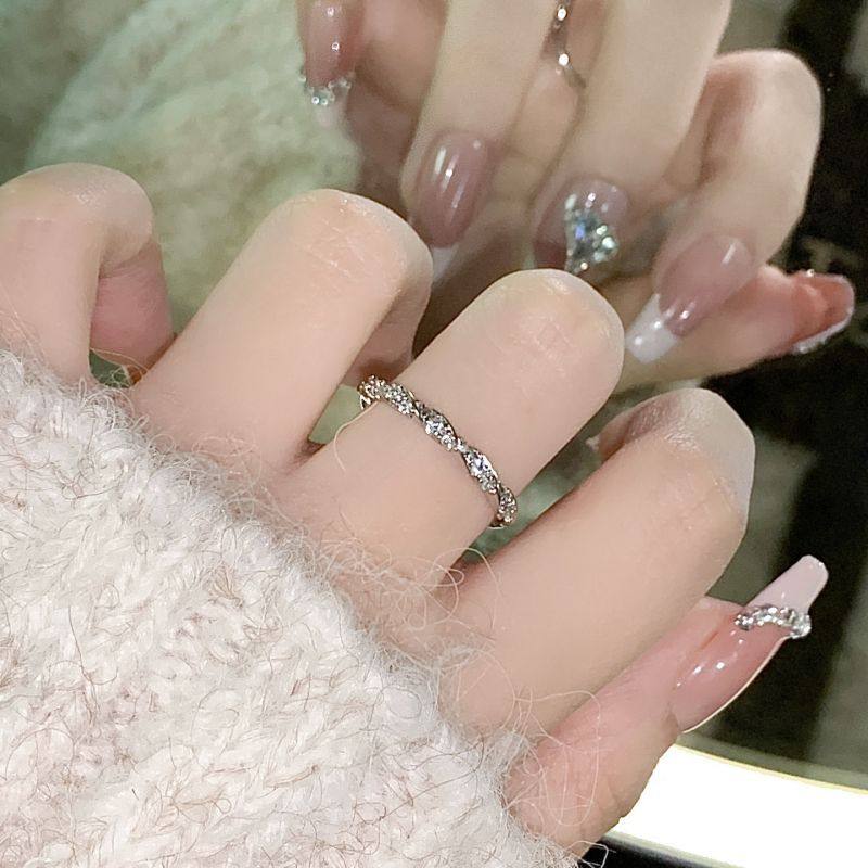 爱意缠绕碎钻麻花素圈戒指女ins风小众气质高级感开口可调节指环