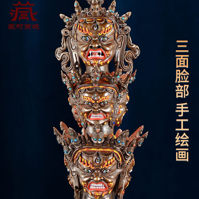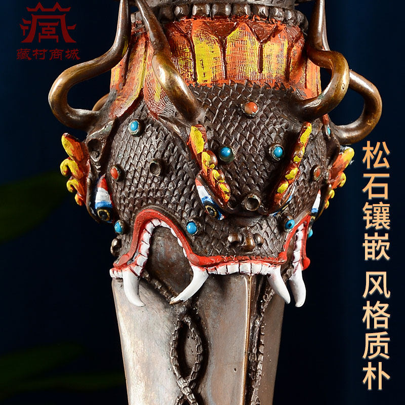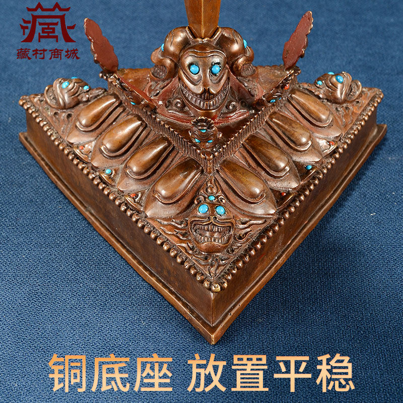 尼泊尔手工铜金刚杵室内家用矿物颜料彩绘金刚橛摆件带底座