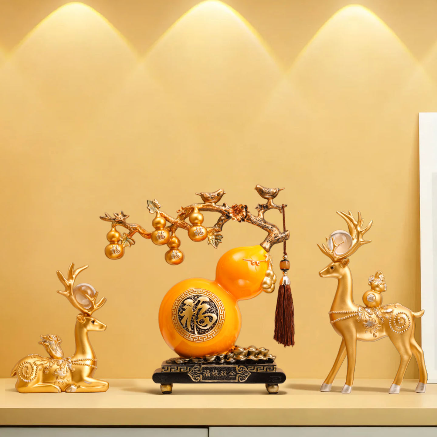 招财鹿桌面摆件轻奢高档入玄关客厅电视柜酒柜乔迁新居葫芦装饰品
