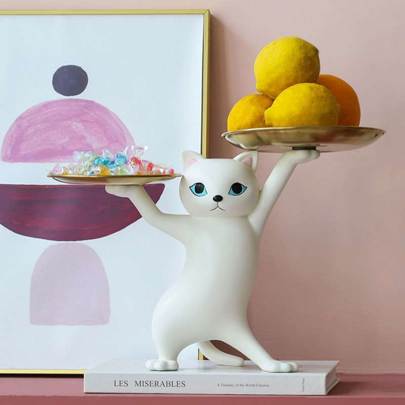 妖娆猫咪玄关钥匙收纳托盘摆件简约家居沙雕猫咪送朋友礼物高级感