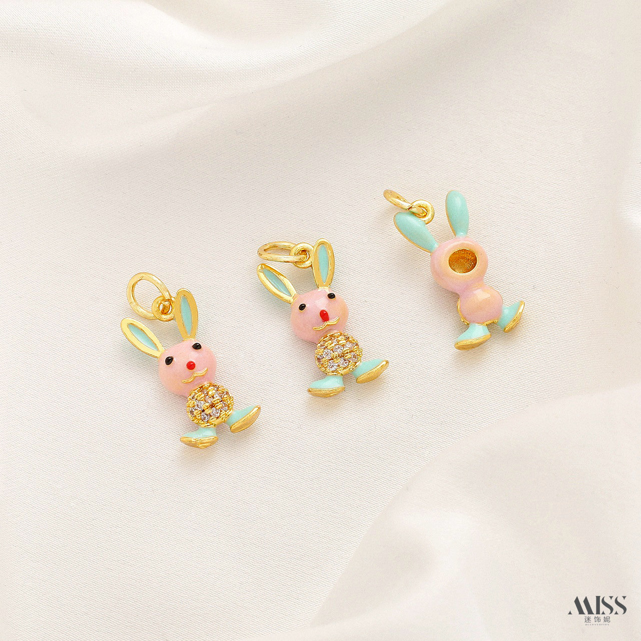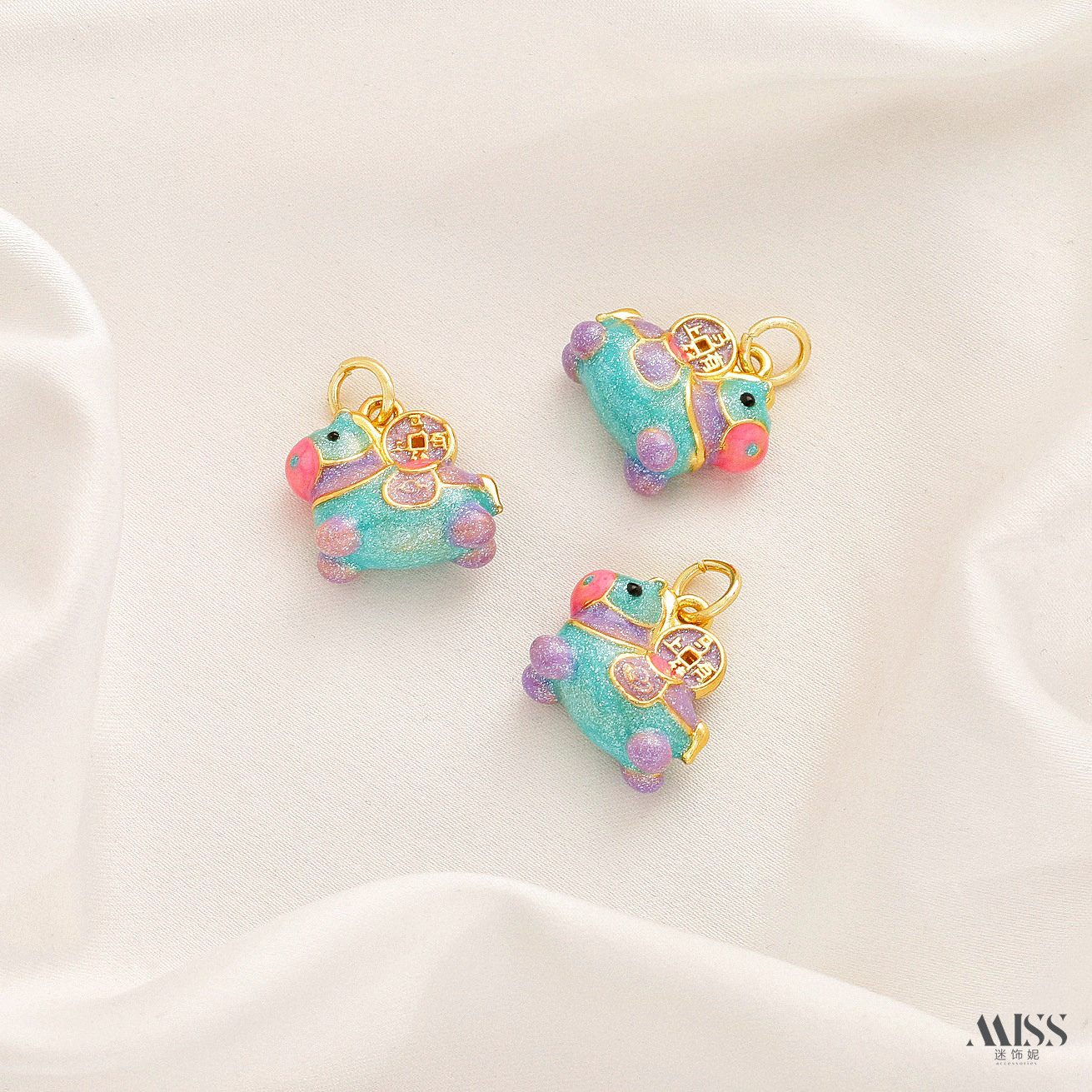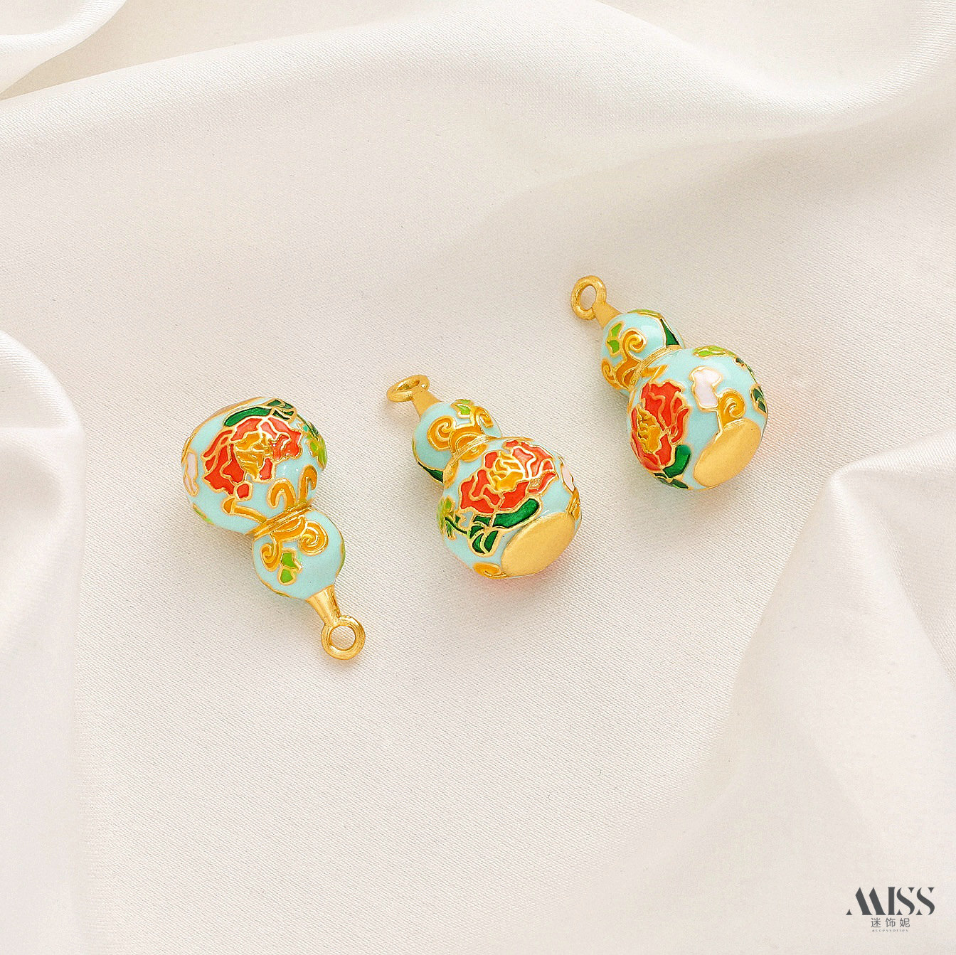 景泰蓝18K包金保色珐琅彩烧蓝葫芦长耳兔马上有钱吊坠diy吊饰配件