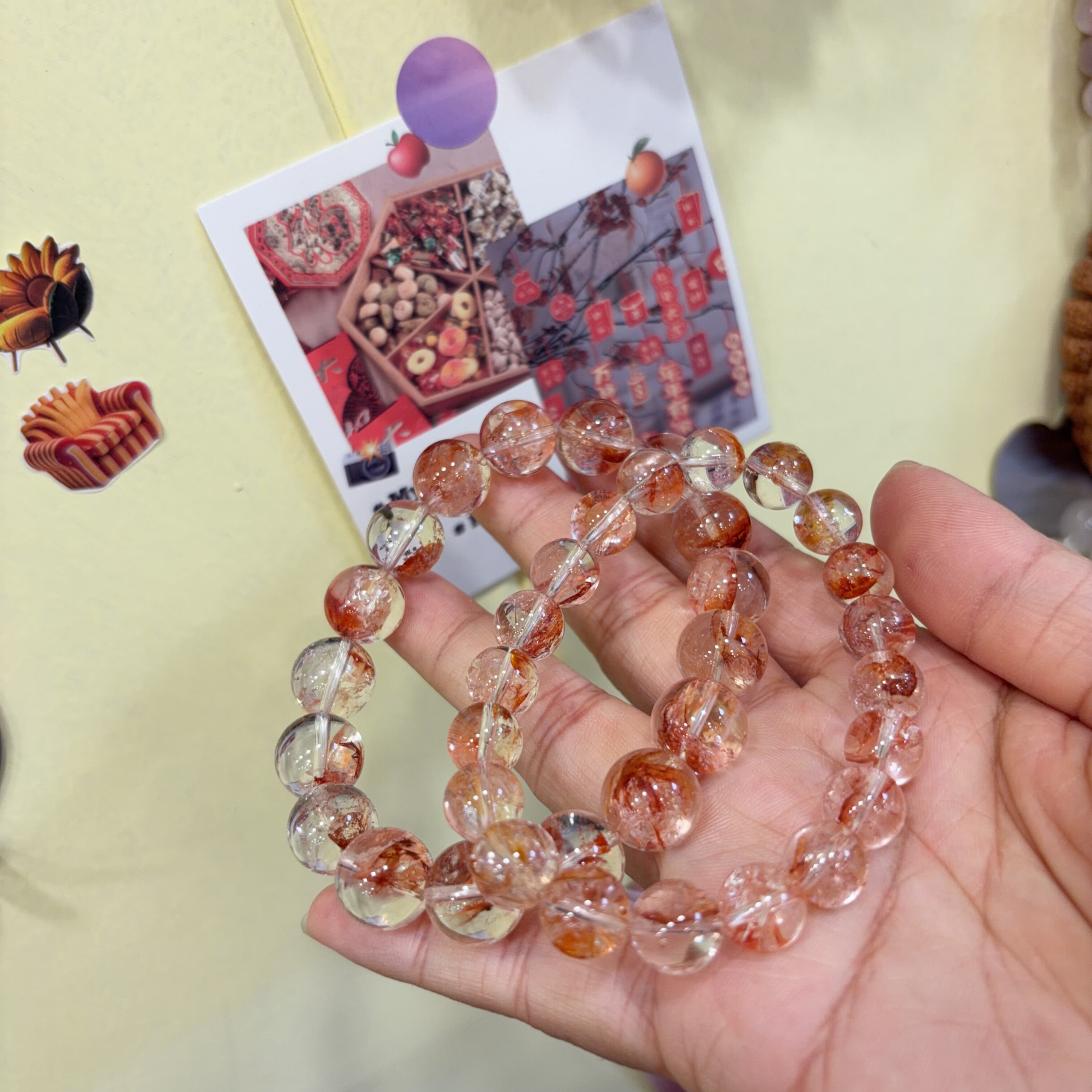天然锦鲤红胶花手链女冰种红黄胶花水晶手串招米红色本命年礼物