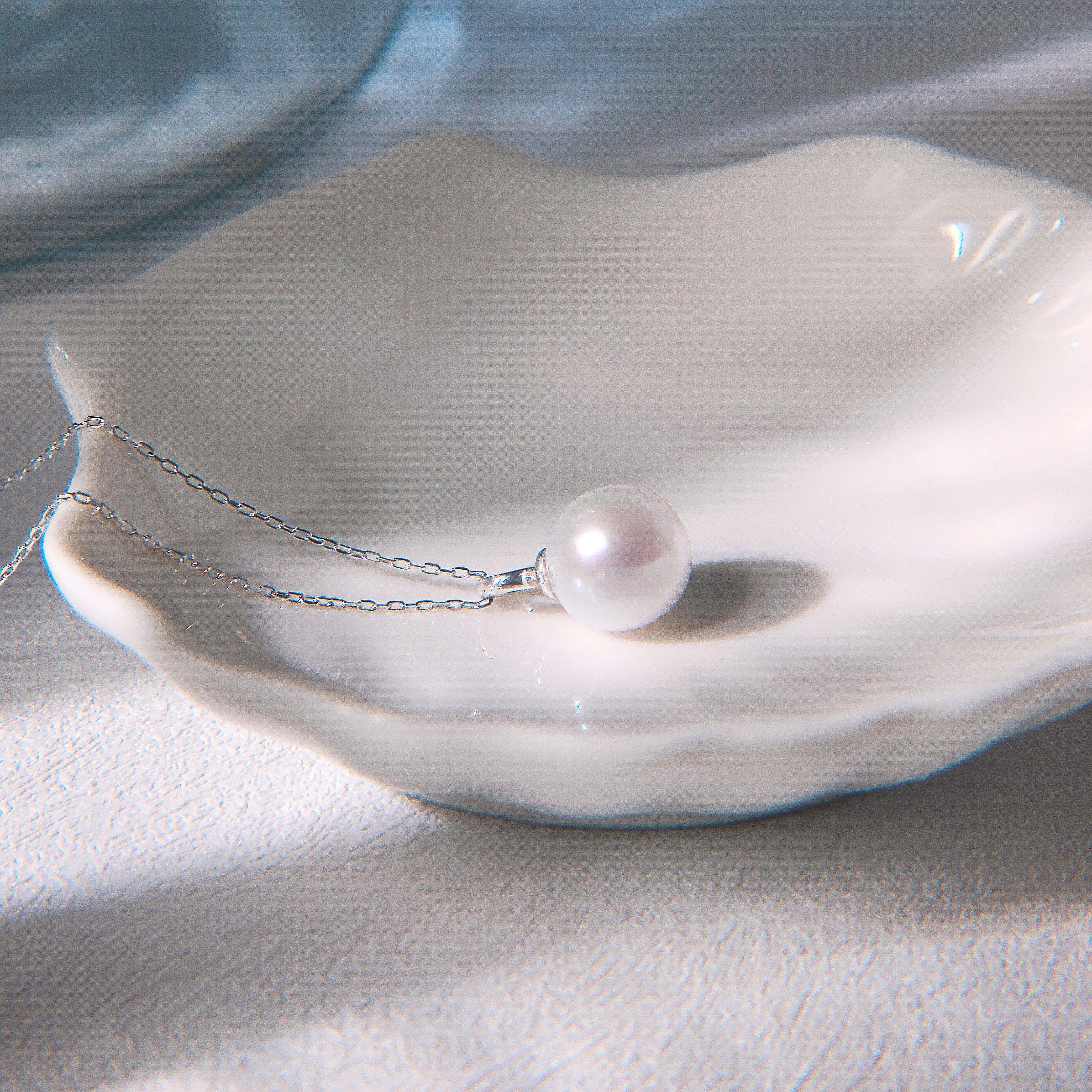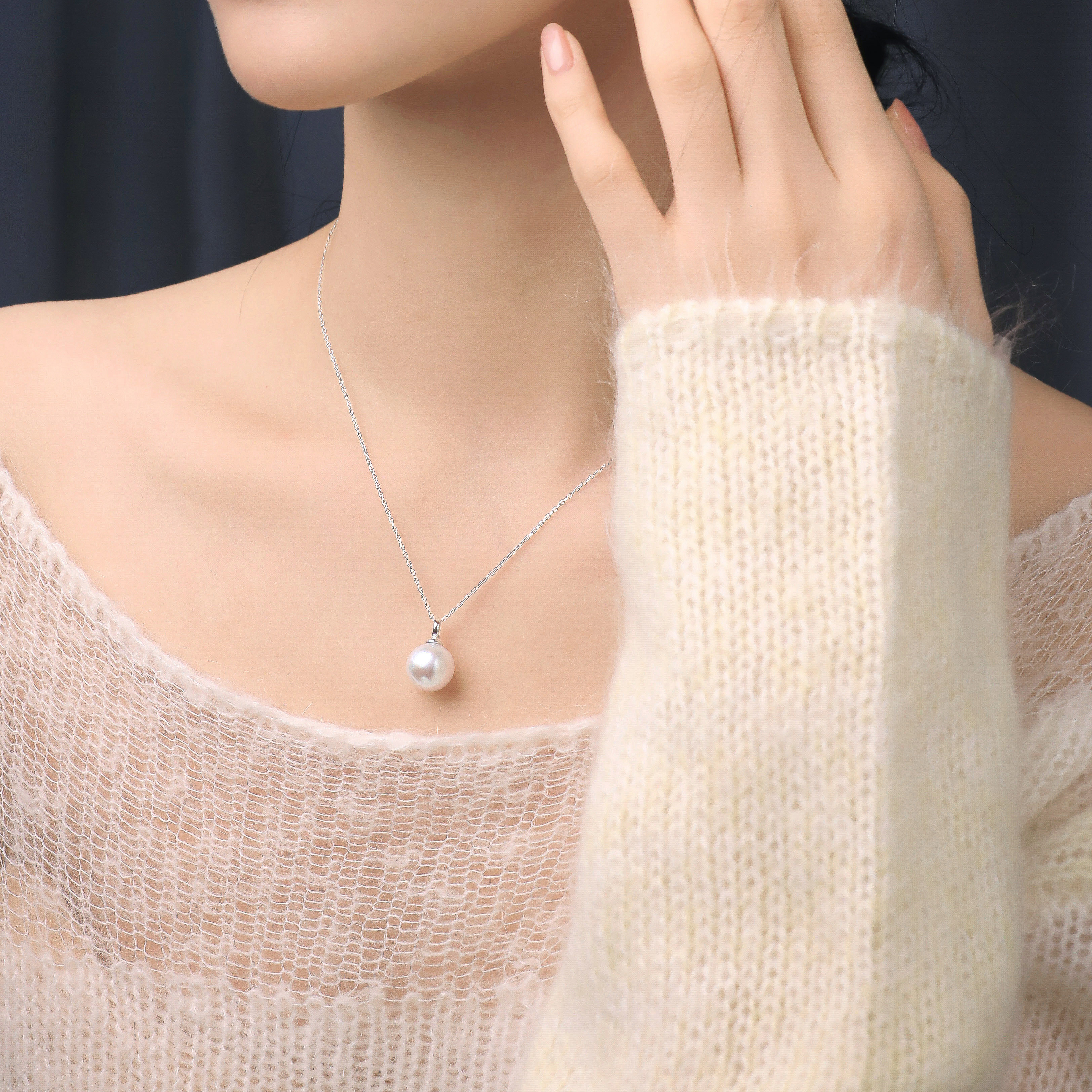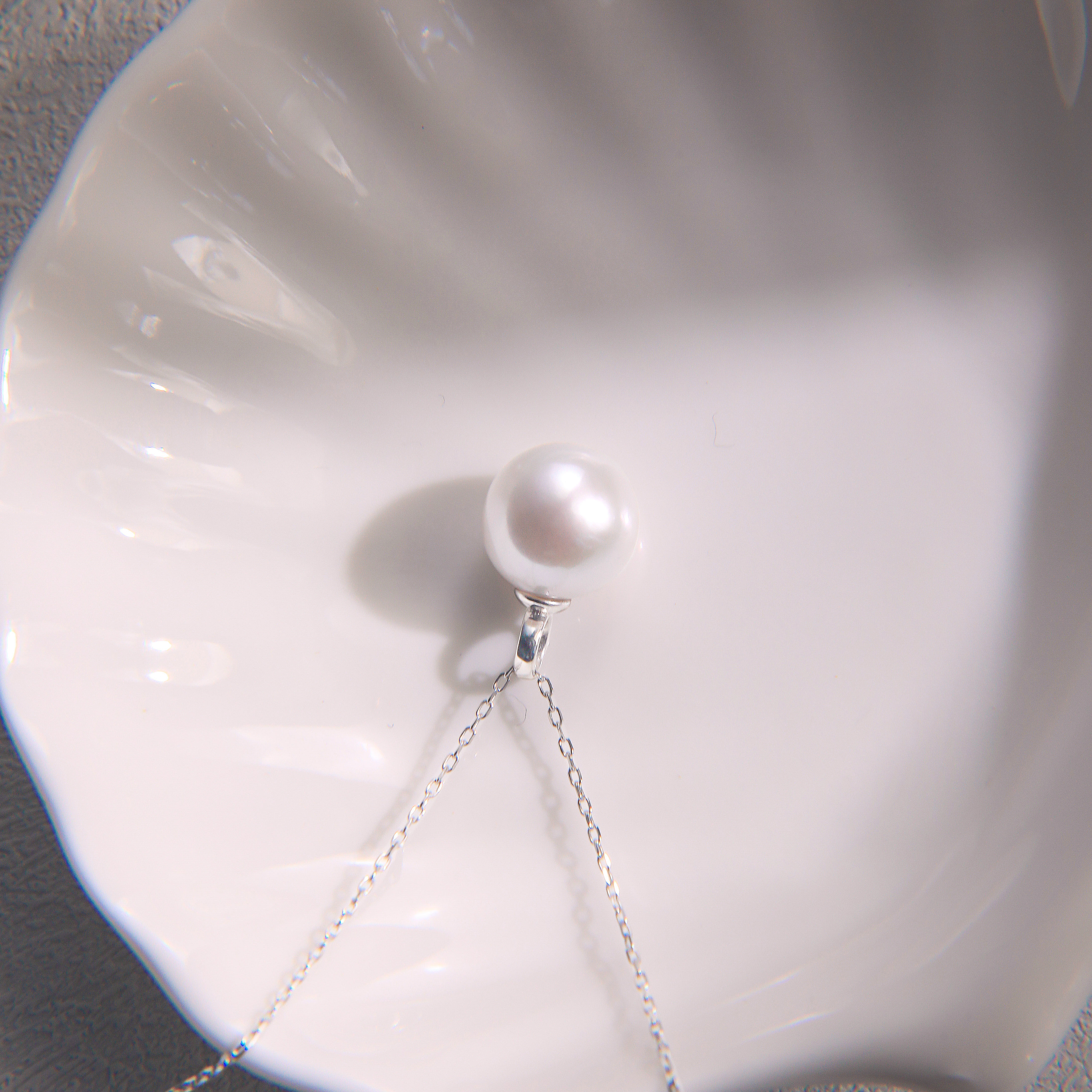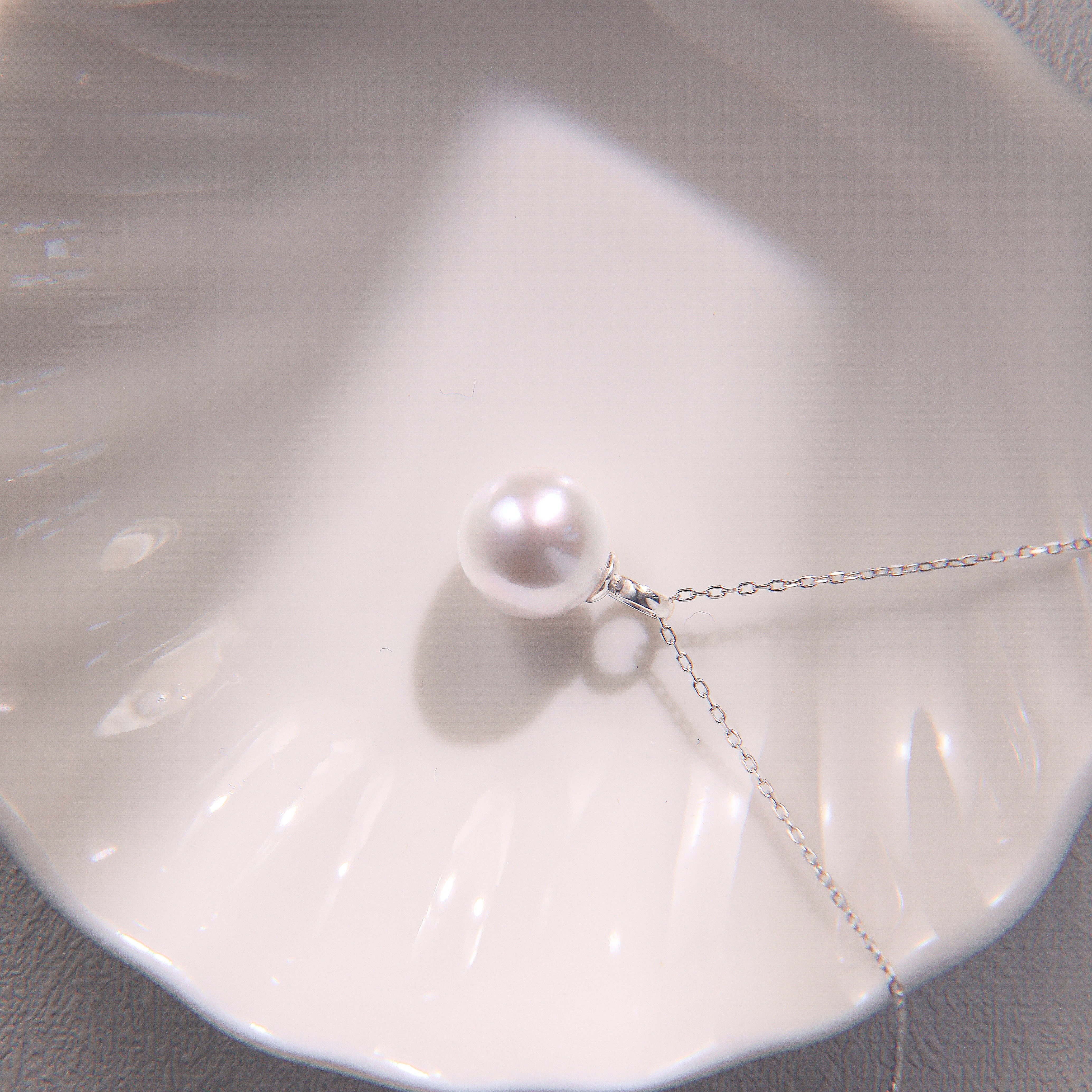 天然淡水珍珠吊坠项链9~12mm圆润饱满亮泽高品质单颗珍珠吊坠银链