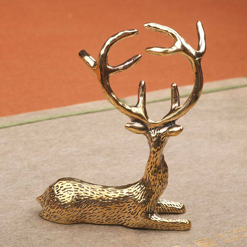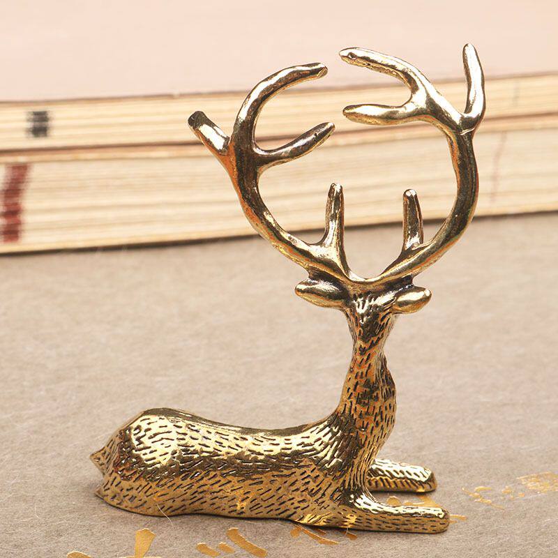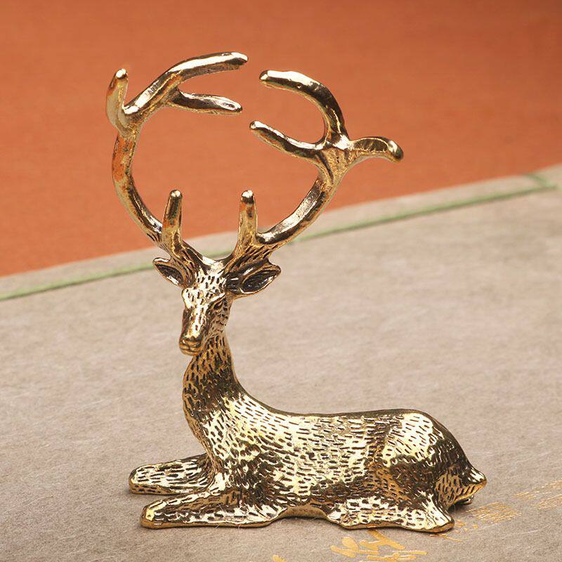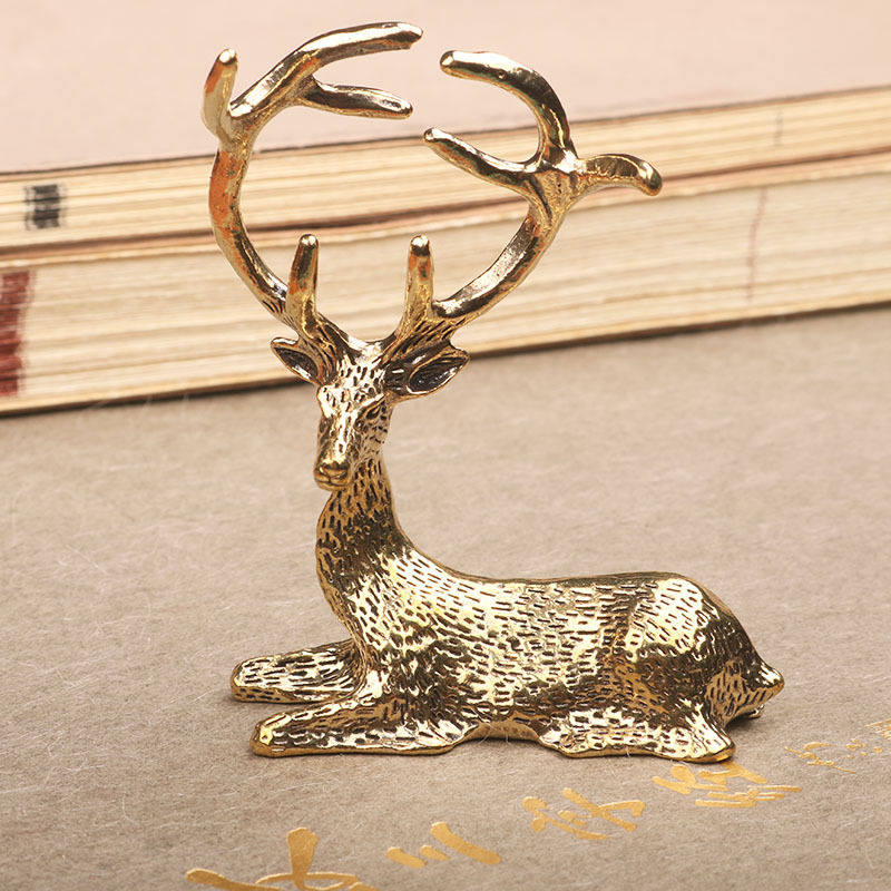 复古黄铜麋鹿长发金鹿摆件黄铜小鹿客厅茶桌 桌面茶宠工艺装饰品