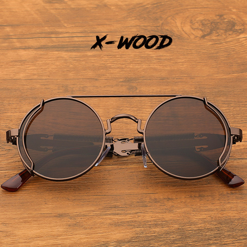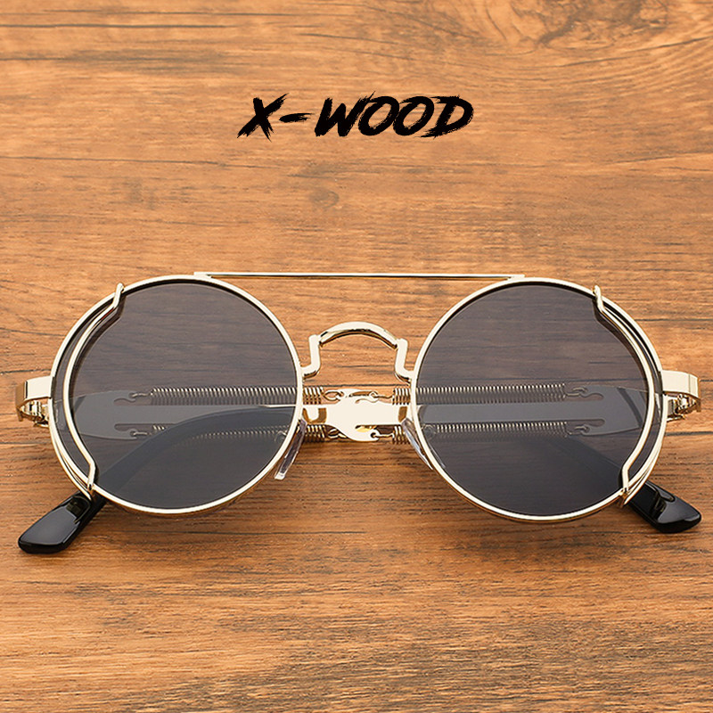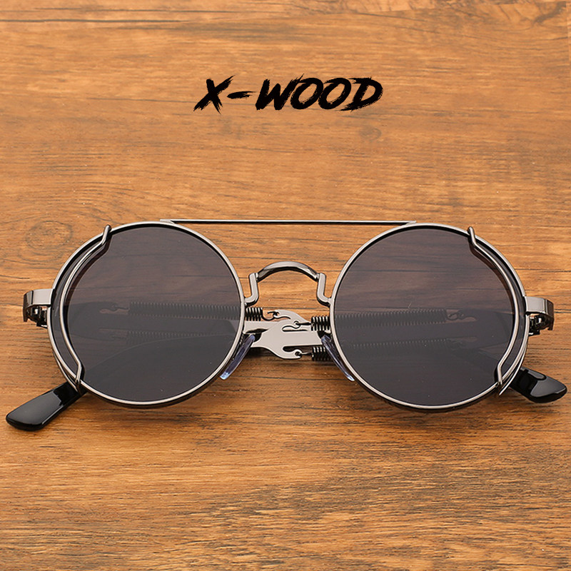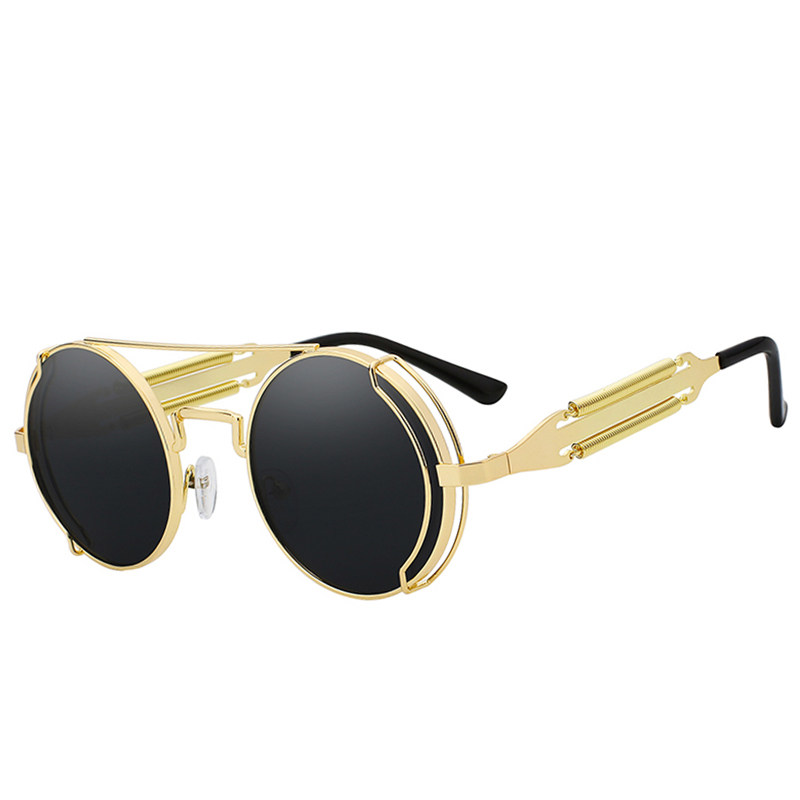 2020新款蒸汽朋克金属圆形框太阳镜男女潮个性大红色双弹簧腿眼镜