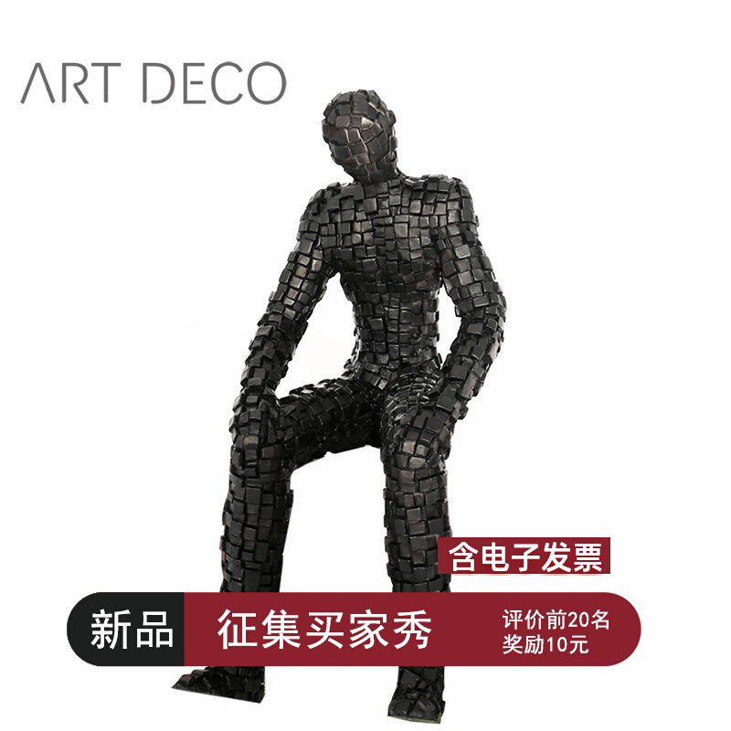 黑白色物现代寝室样板间坐着马赛物树脂饰品