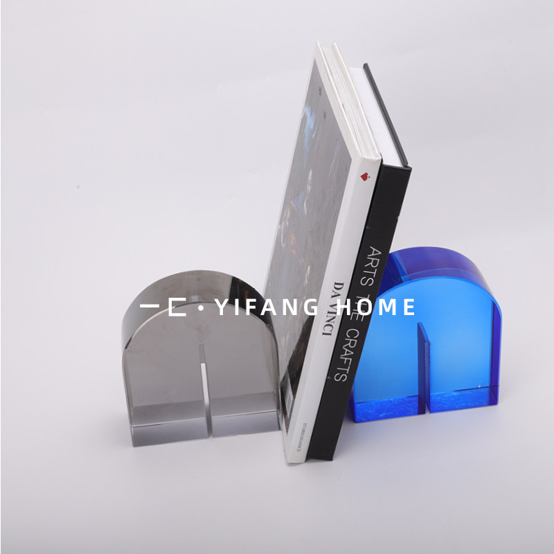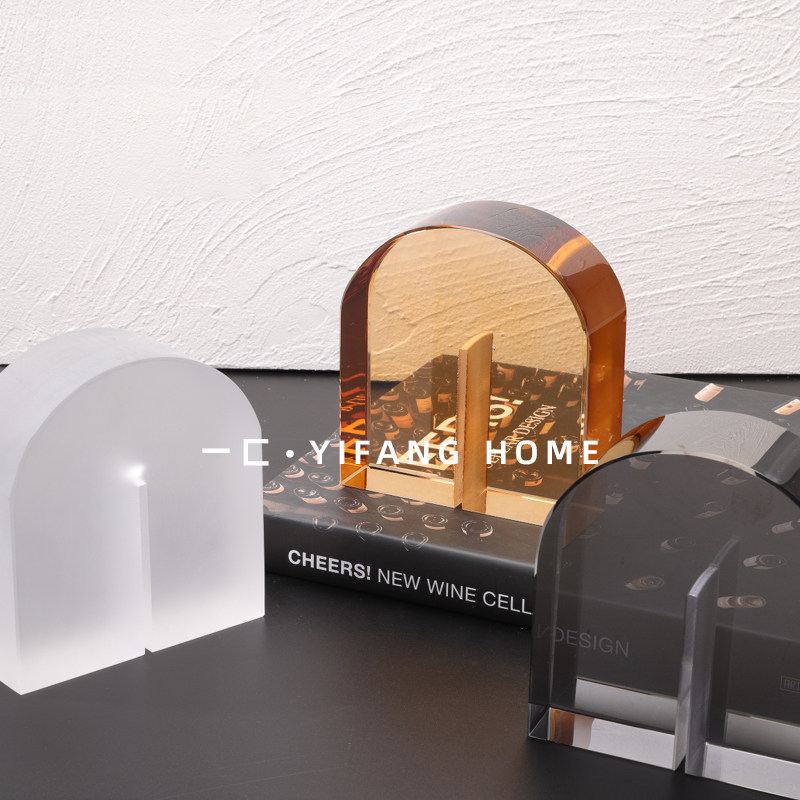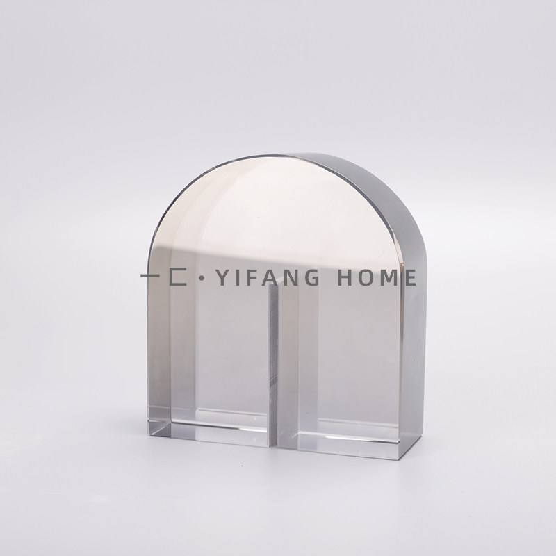 一匚现代简约创意蓝色茶色烟灰色拱门型水晶摆件样板房售楼处饰品