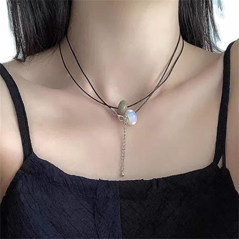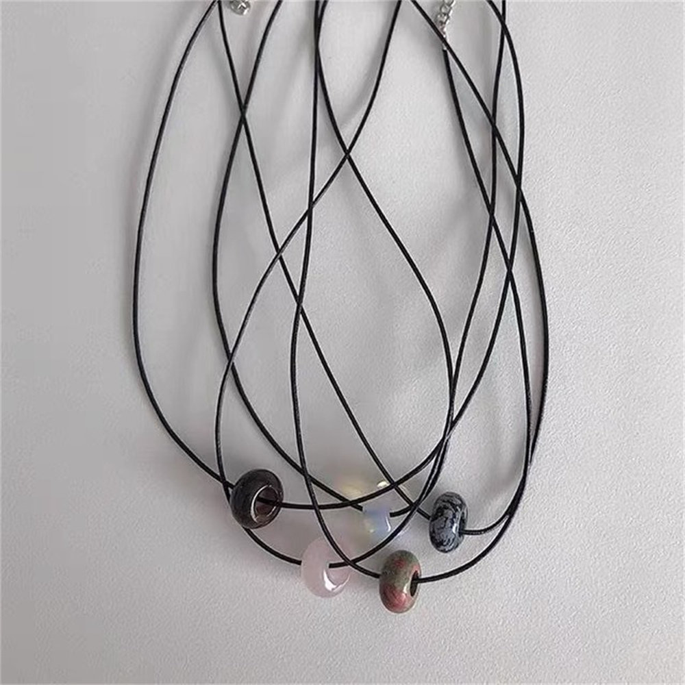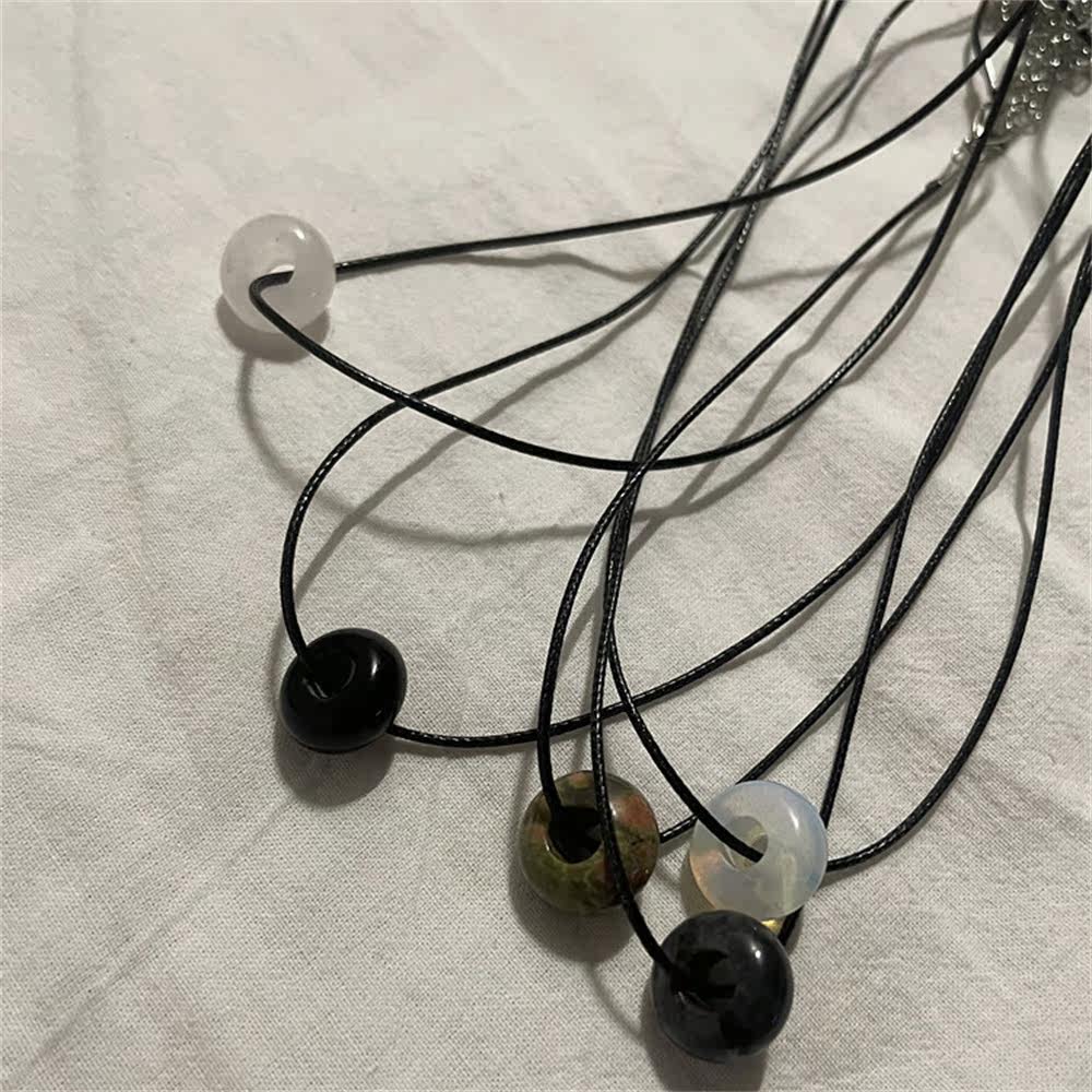 Vintage Jade Beads Round Stone Pendant Necklaces for Women C