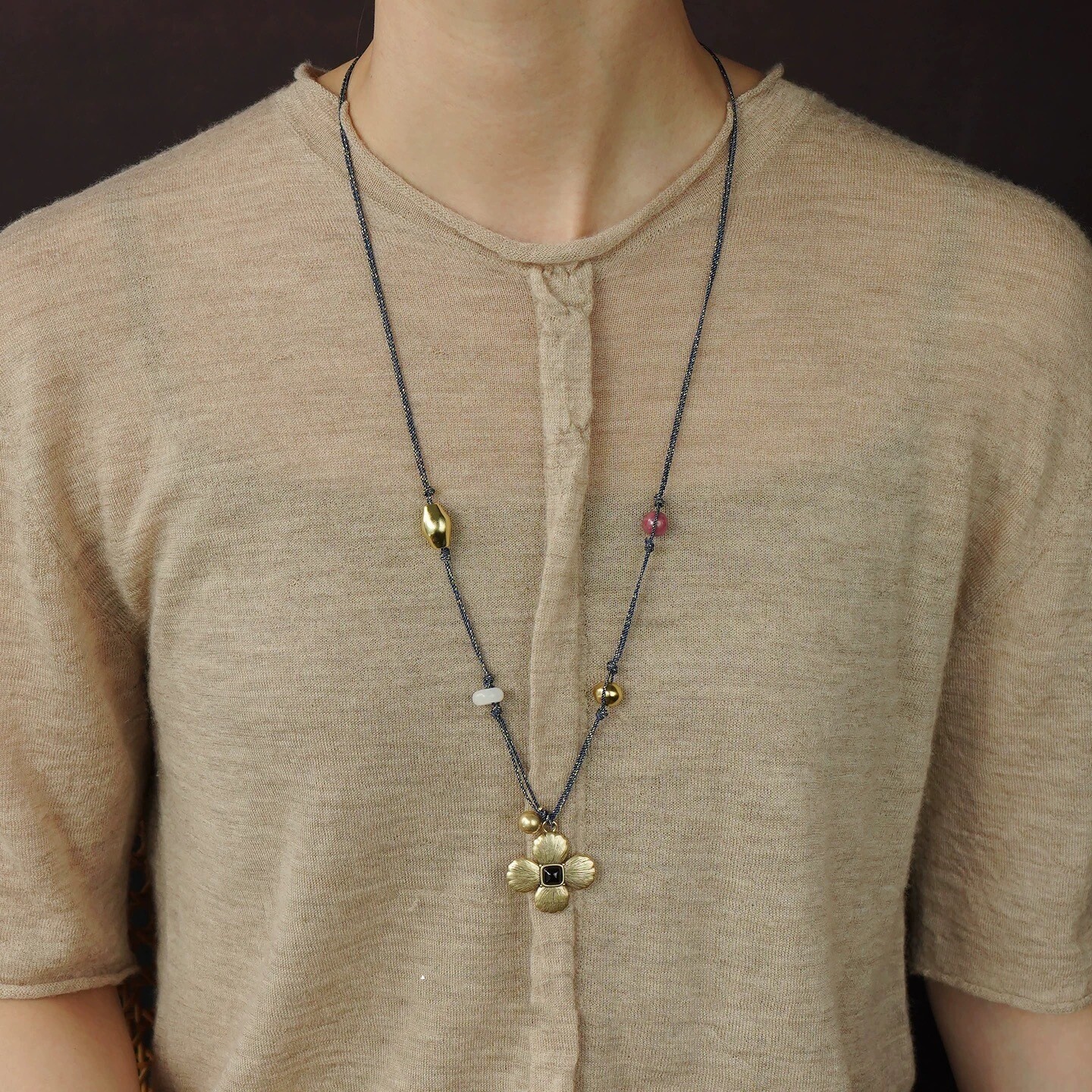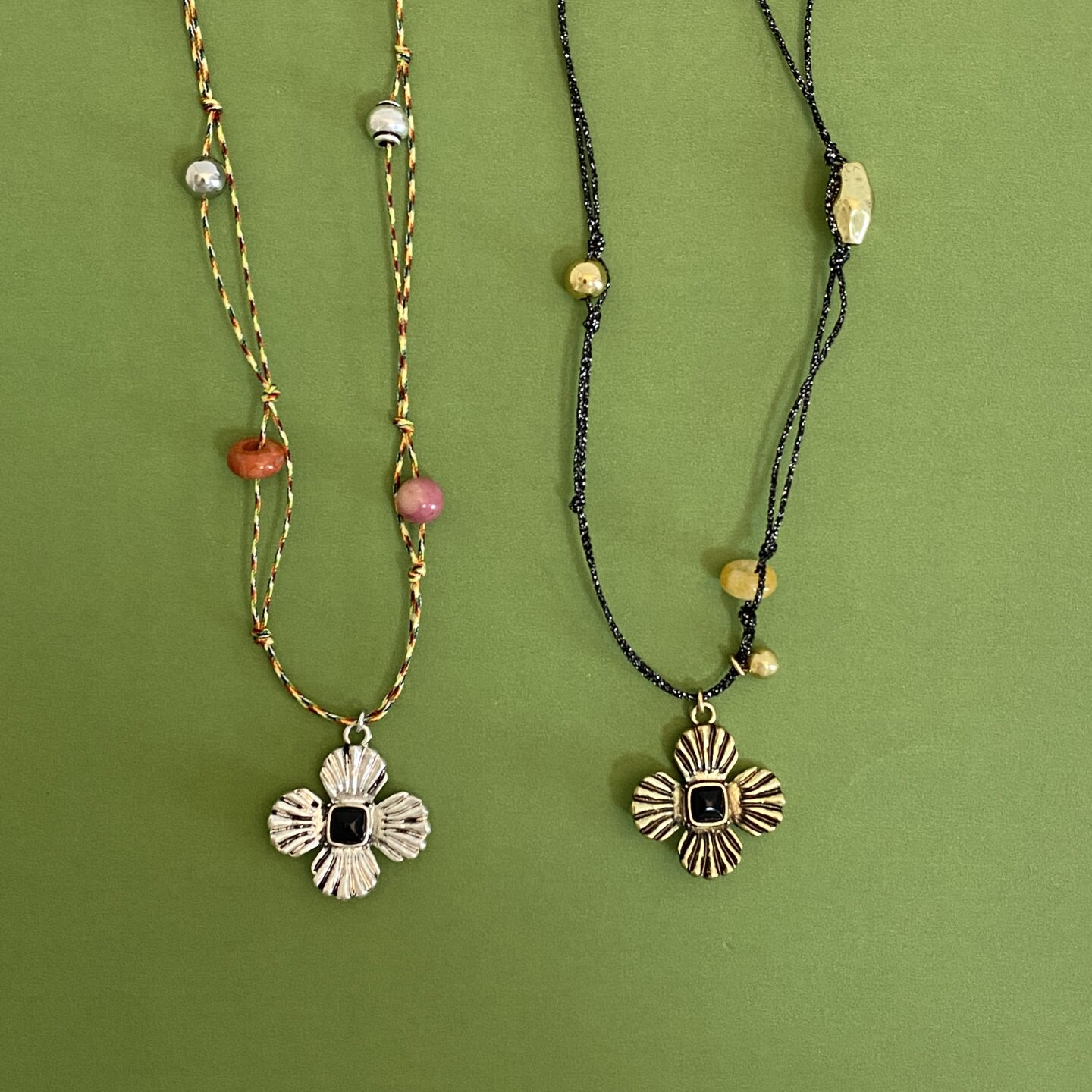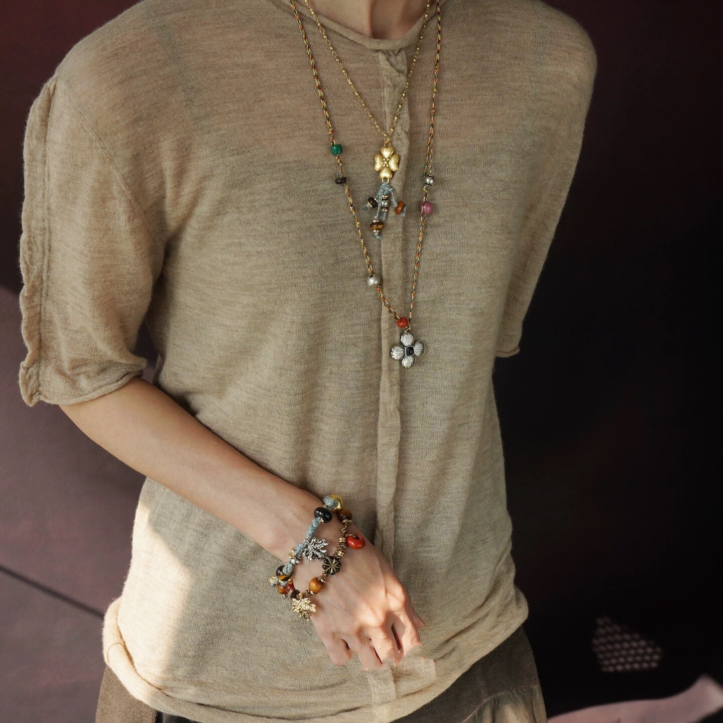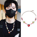 刘宇宁同款贝壳花编织项链复古彩色石头串珠花花幸运锁骨毛衣链