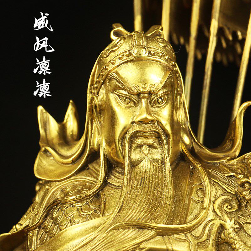 热销大号铜九龙关公像立刀武财神爷关二爷五行令旗关帝圣君雕塑定