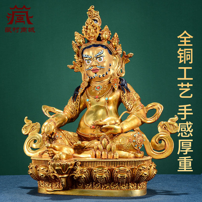 全鎏金《黄财神》精工铜雕花宝石镶嵌家用《财神》铜像摆件