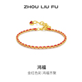 庆祥泰14k极细手工编织红手绳手链女士本命年红色情侣生日送礼物