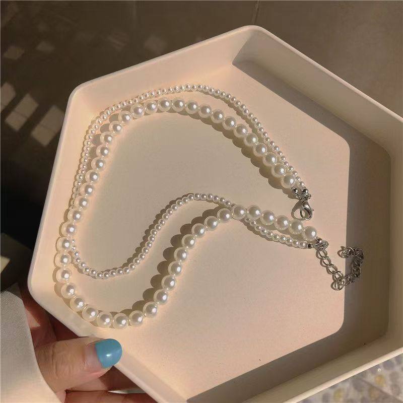 许我耀眼许妍赵露思同款复古设计感双层叠戴珍珠项链锁骨链饰品