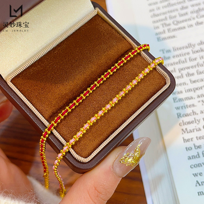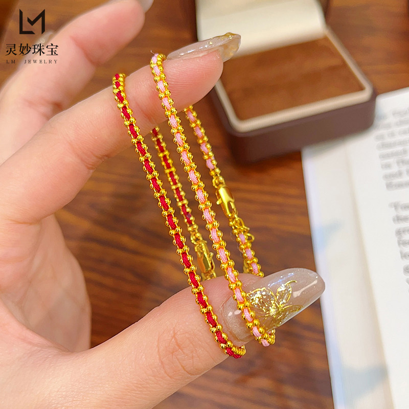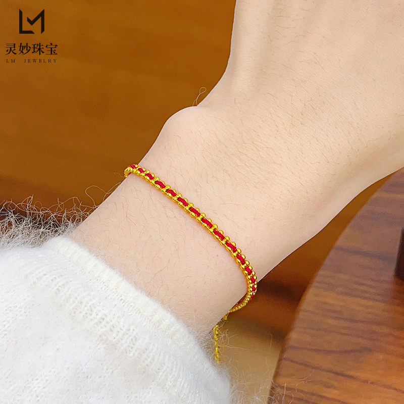 金店同款沙金红绳手链红色幸运绳素链本命年可diy叠戴简约百搭女