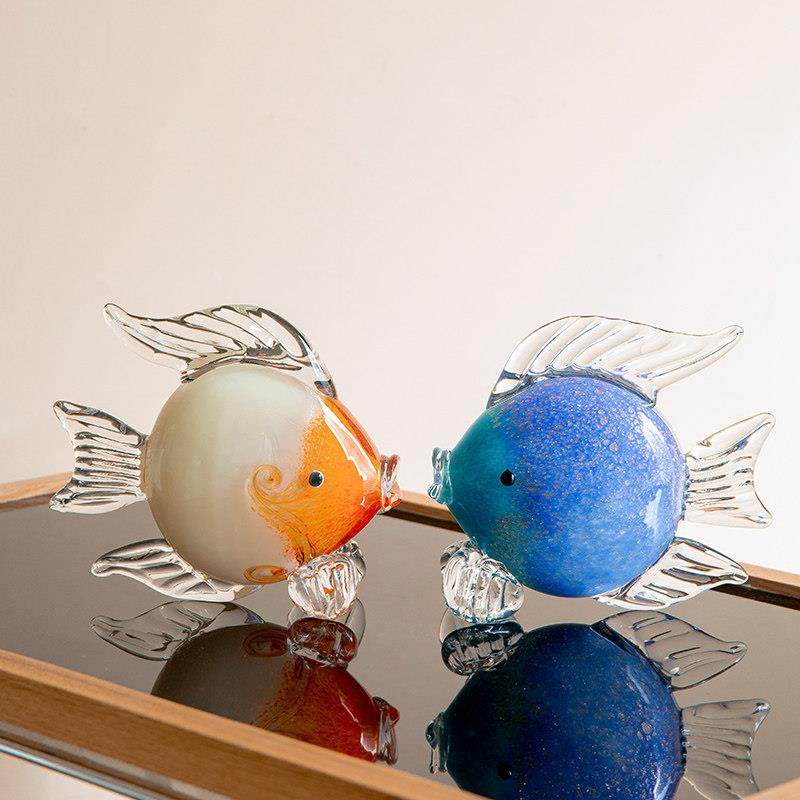 高档琉璃鱼摆件轻奢风家居装饰品现代简约酒柜玻璃高级感客厅摆设