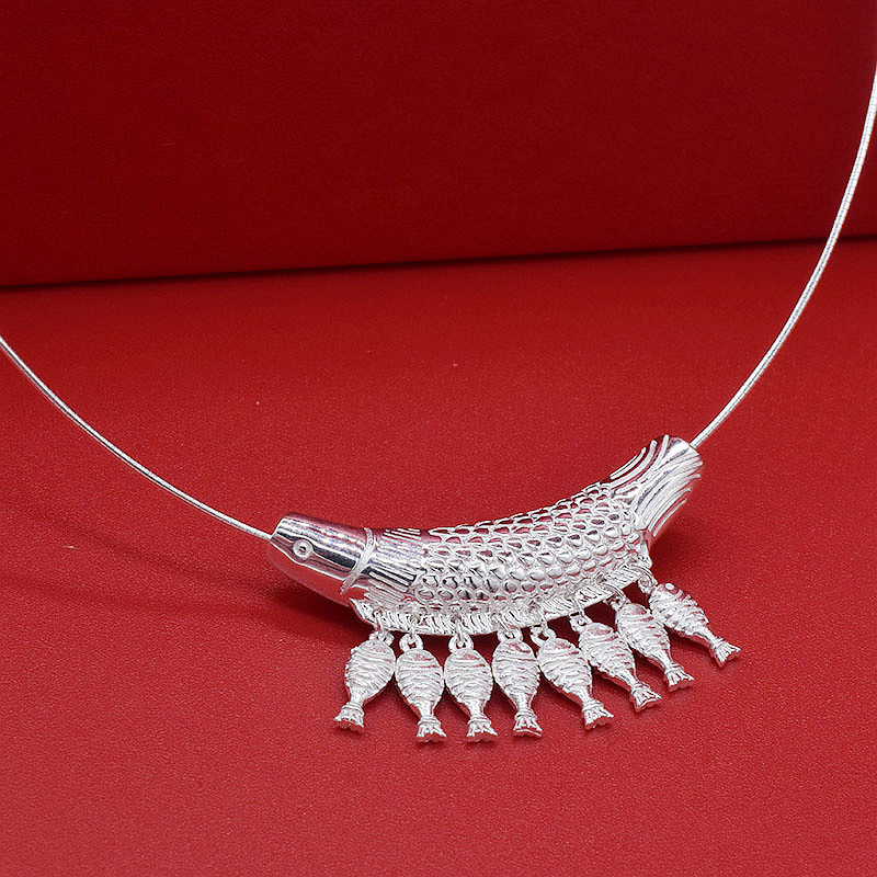999纯银打造鱼弯管吊坠 足银流苏鱼儿月牙弯项圈轻奢小众锁骨饰品