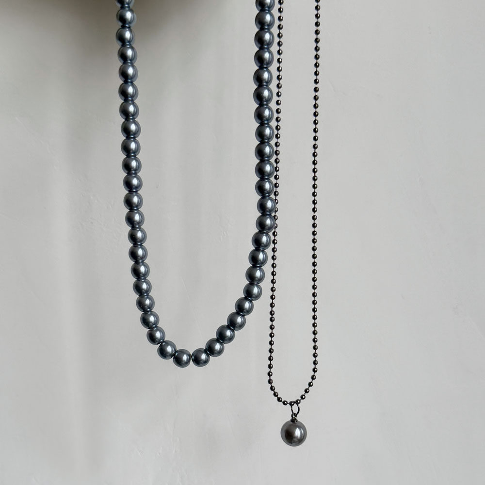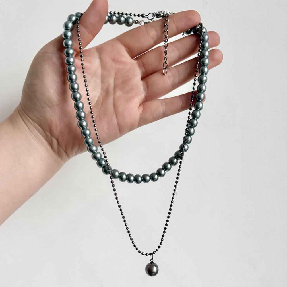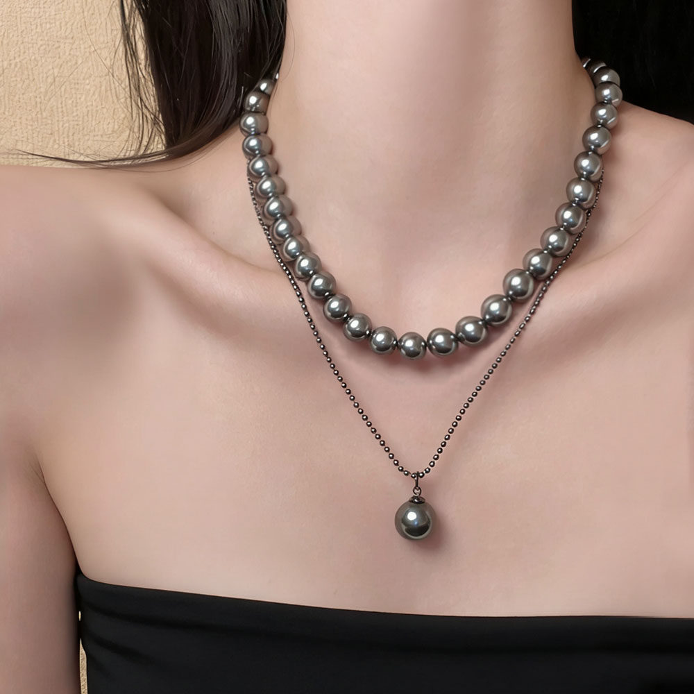真多麻银灰色叠戴珍珠毛衣链项链女百搭配饰高级感轻奢锁骨颈链