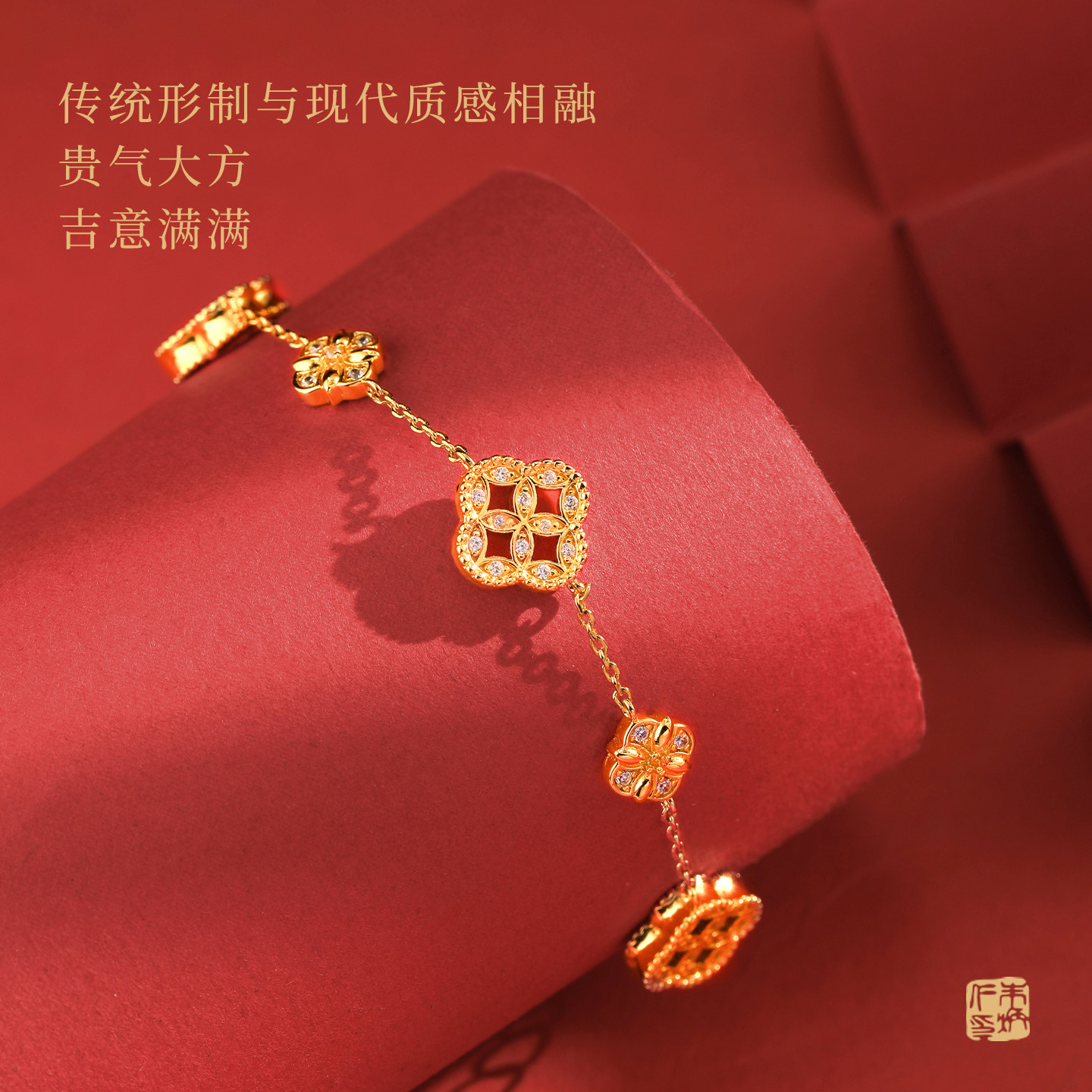 朱炳仁铜四方来财首饰项链手链钱币纹镂空精美红色氛围感新年礼物