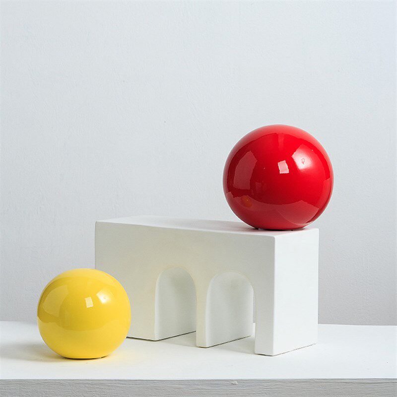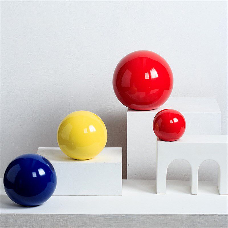 红色圆球形摆件简约家居彩色陶瓷球摆设酒店样板房展厅茶几装饰品