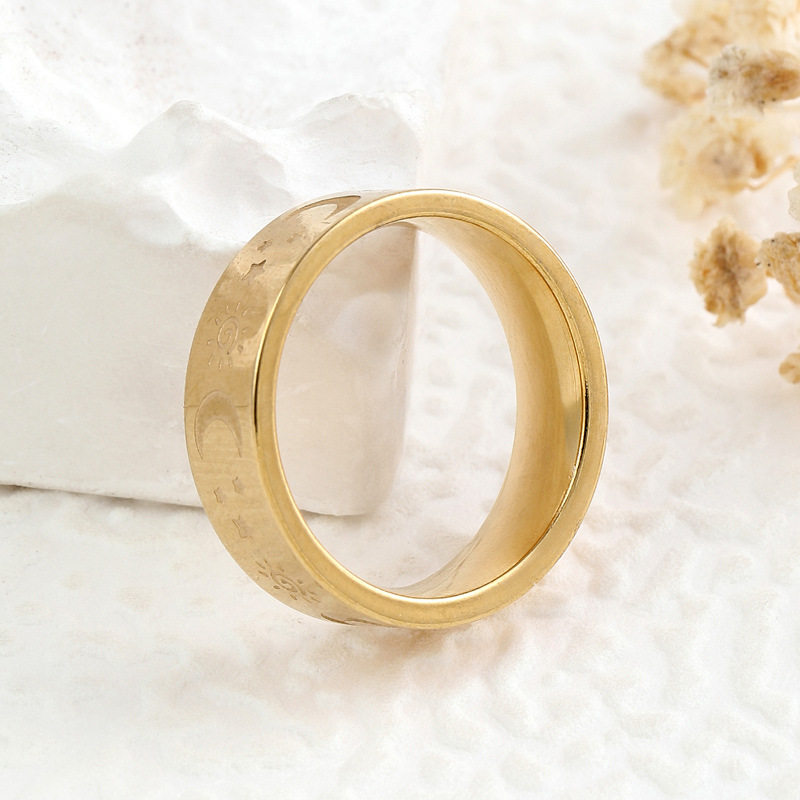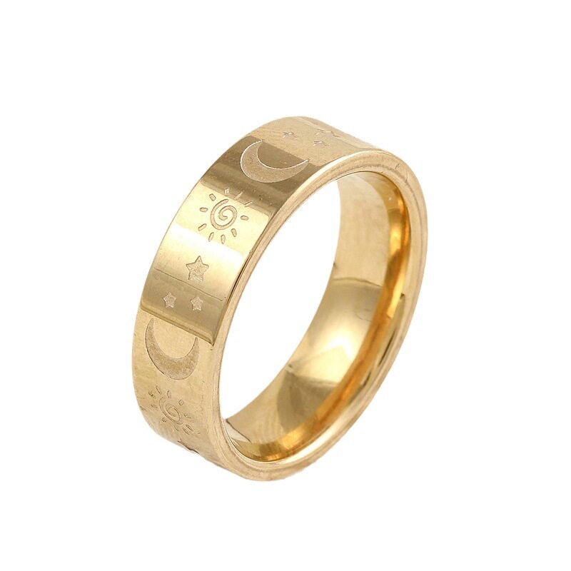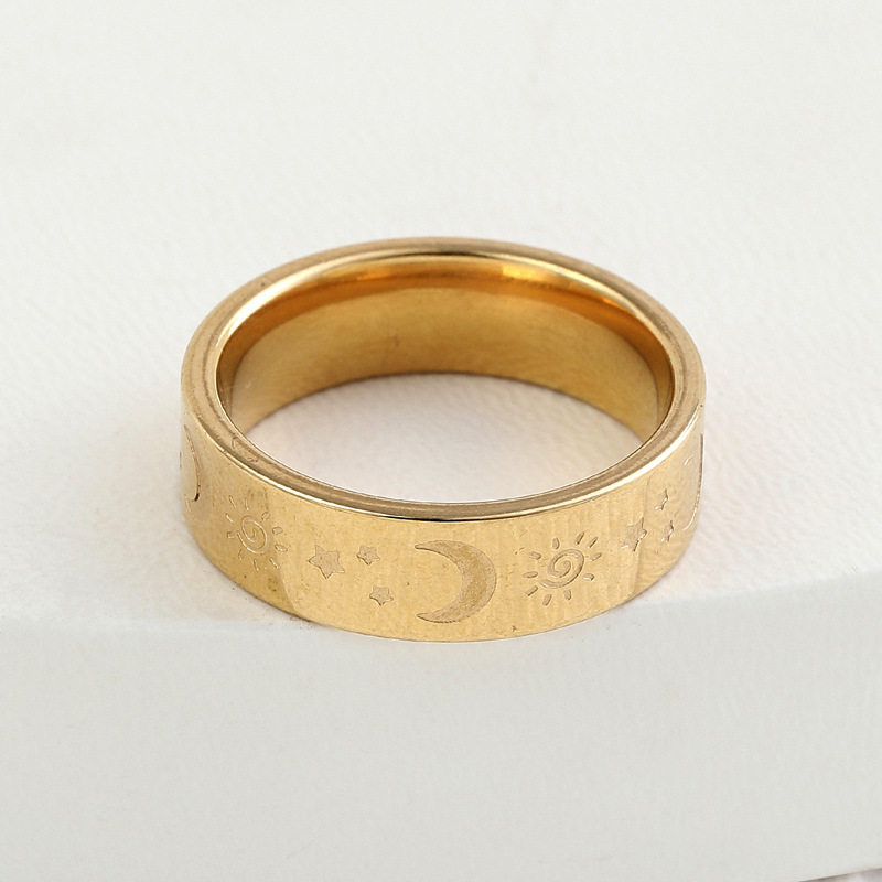 欧美跨境百搭供应 饰品腐蚀日月星辰钛钢戒指 精美时尚情侣指环女