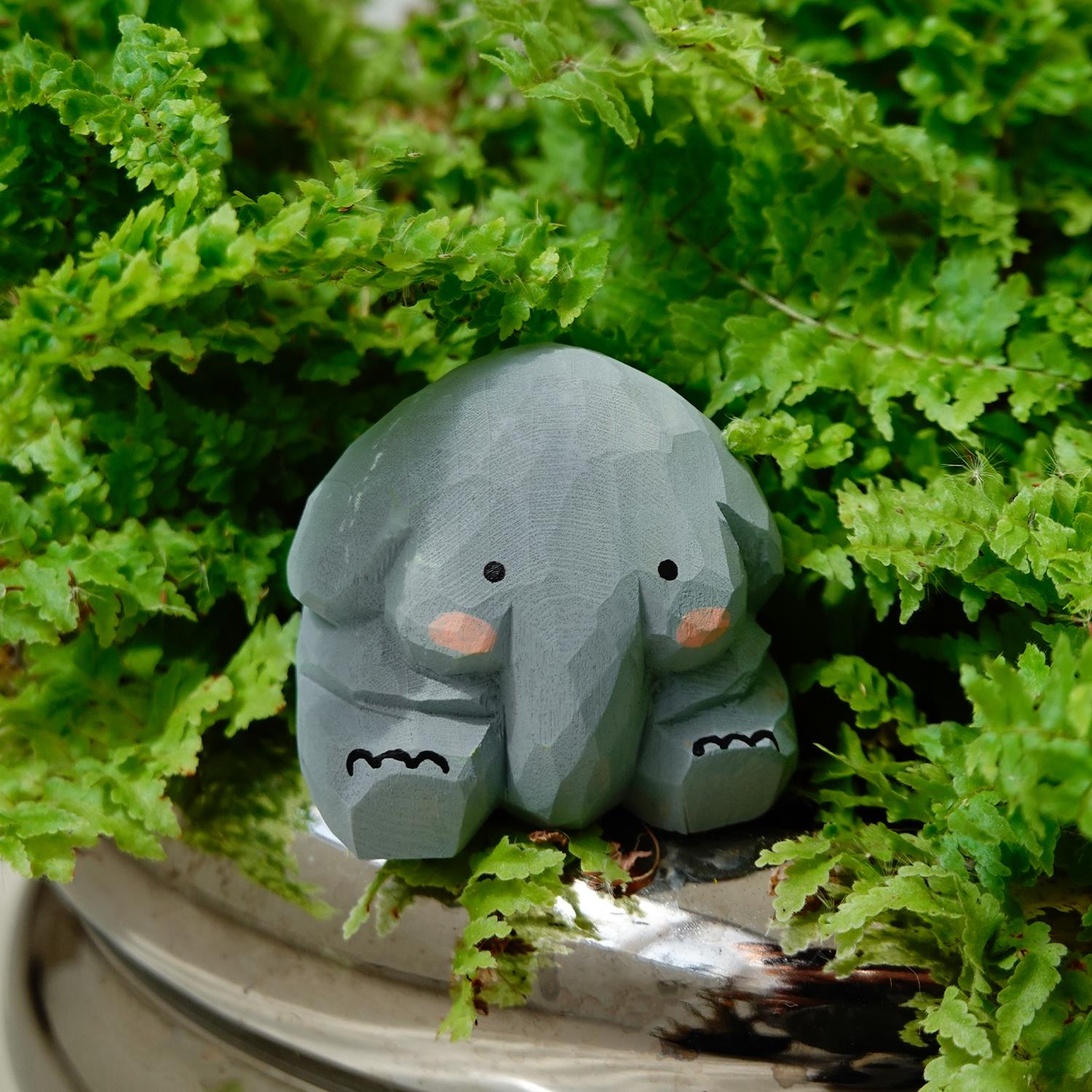 木刻自习室木雕大象摆件可爱小象动物书架挂柜子显示器屏幕装饰