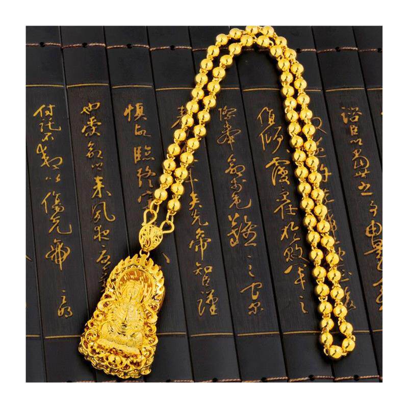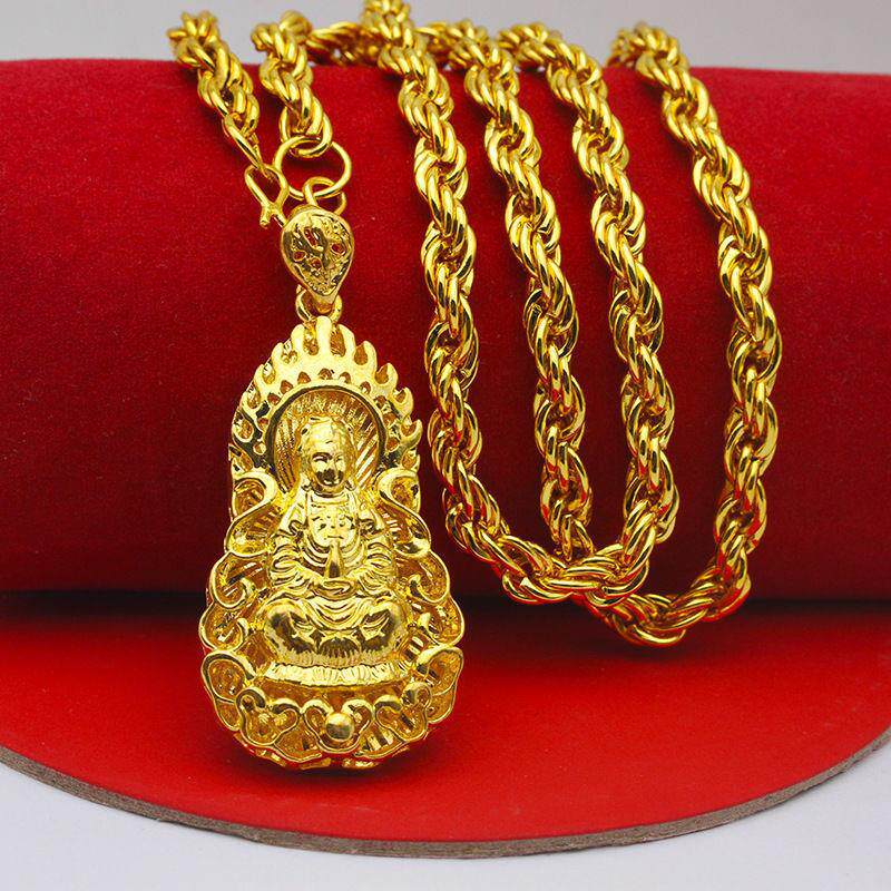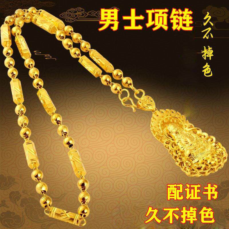正品项链男款沙金竹节项链24平安火焰观音坠久不掉色