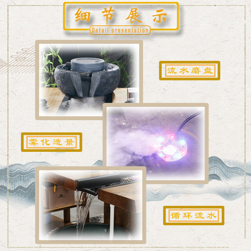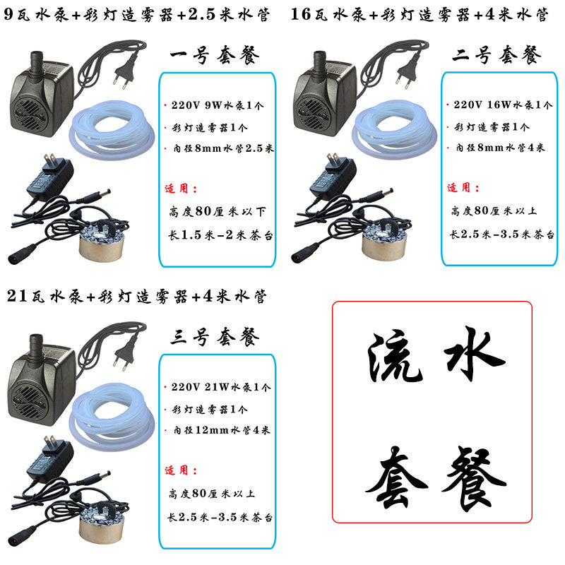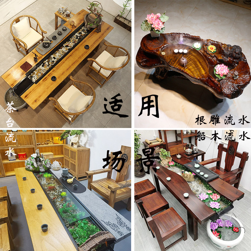 养鱼循环抽水泵船木茶台根雕流水摆件配件家用茶桌彩灯雾化造雾灯