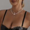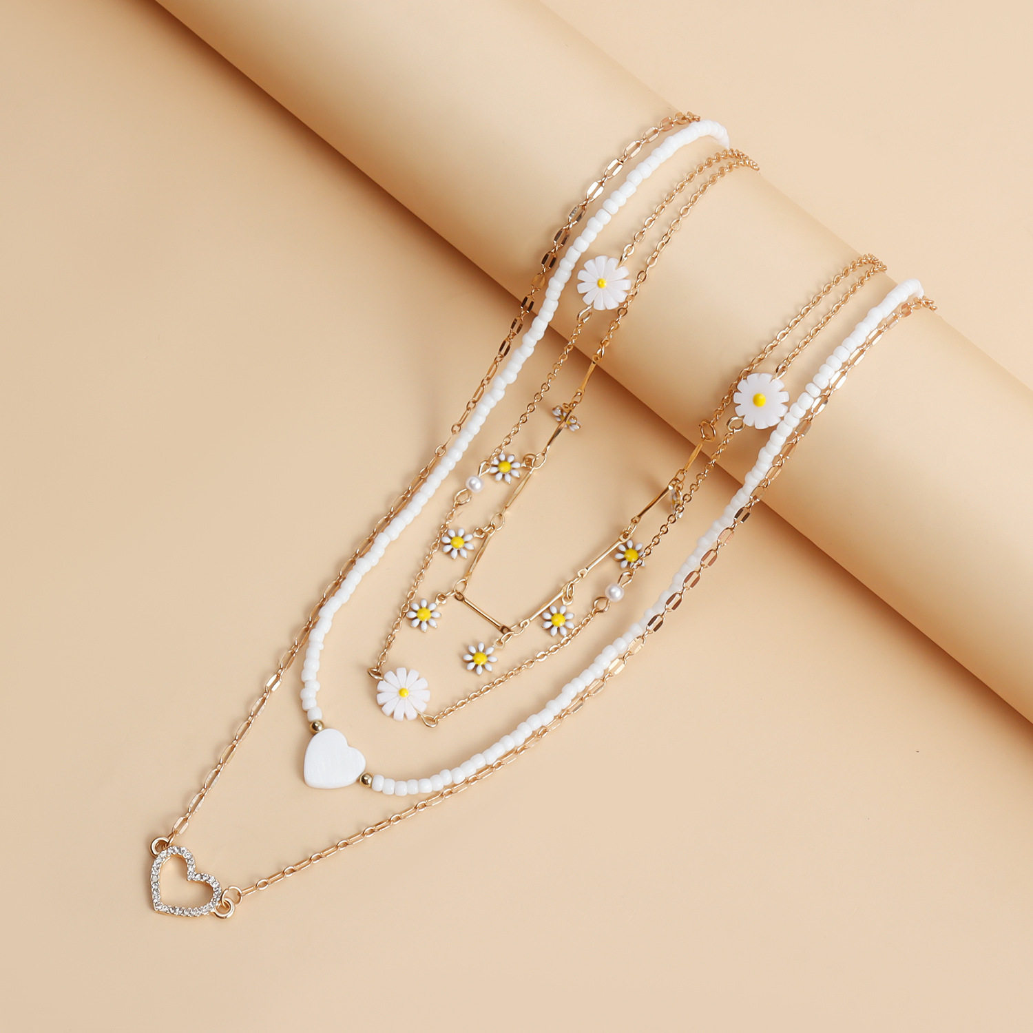 Norns田园风小清新白色米珠滴油野菊花爱心吊坠镶钻爱心多层项链