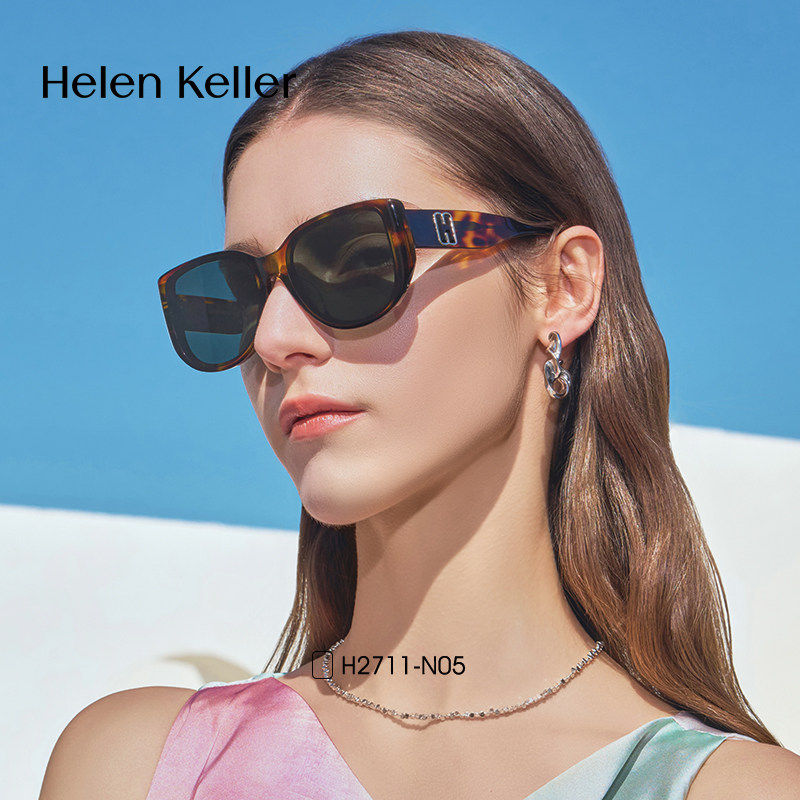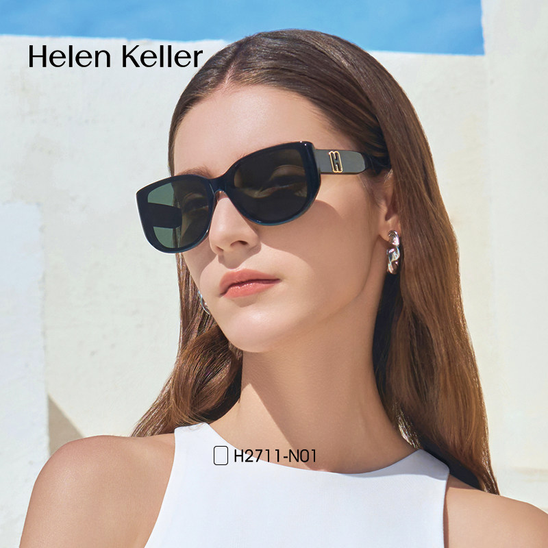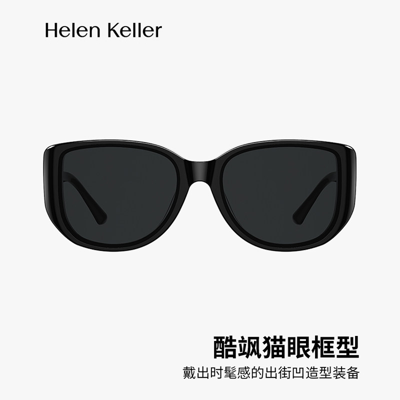 海伦凯勒明星同款眼镜猫眼发箍墨镜女士遮颧骨白色太阳镜男H2711