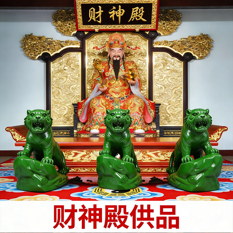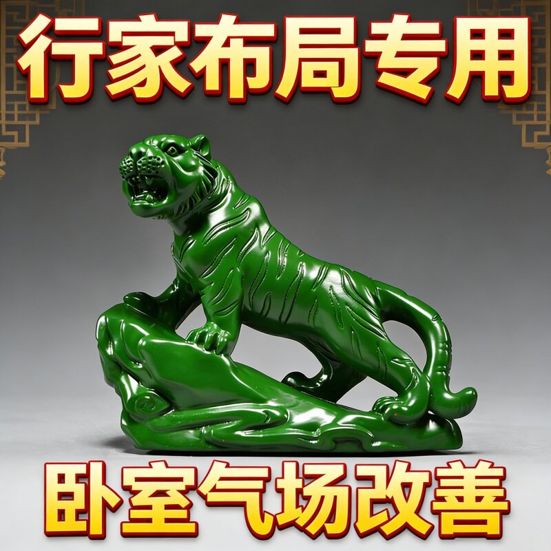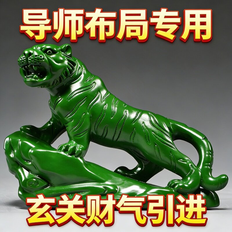 中式绿色老虎摆件树脂装饰品办公室店铺招财桌面摆件吉祥物工艺品